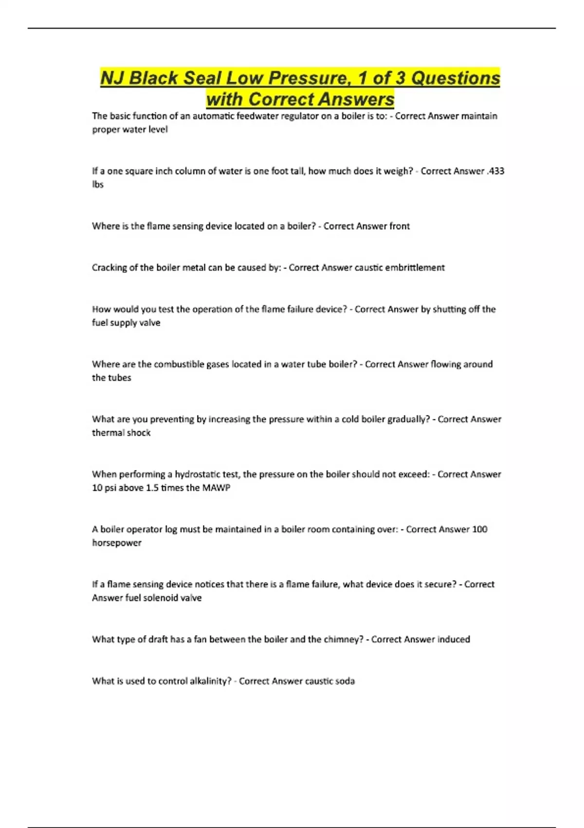 NJ Black Seal Low Pressure, 1 of 3 Questions with Correct Answers