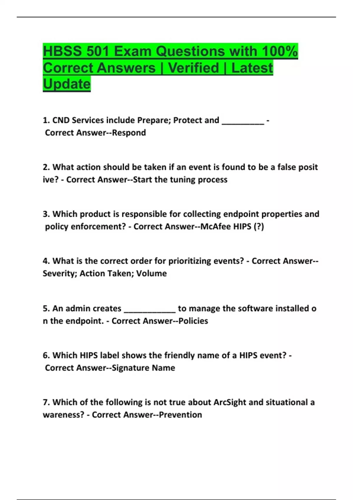 Correct Answers | Verified | Latest
