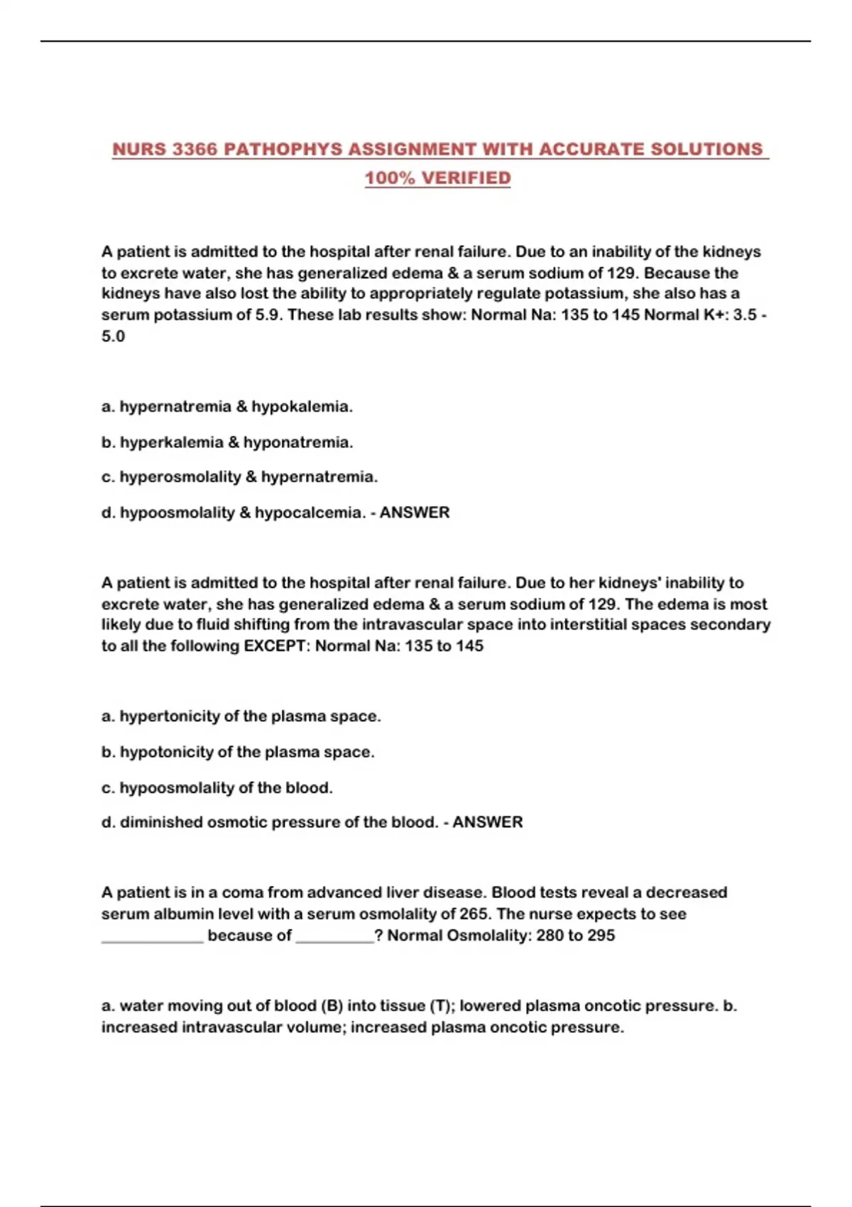 NURS 3366 PATHOPHYS ASSIGNMENT WITH ACCURATE SOLUTIONS 100% VERIFIED