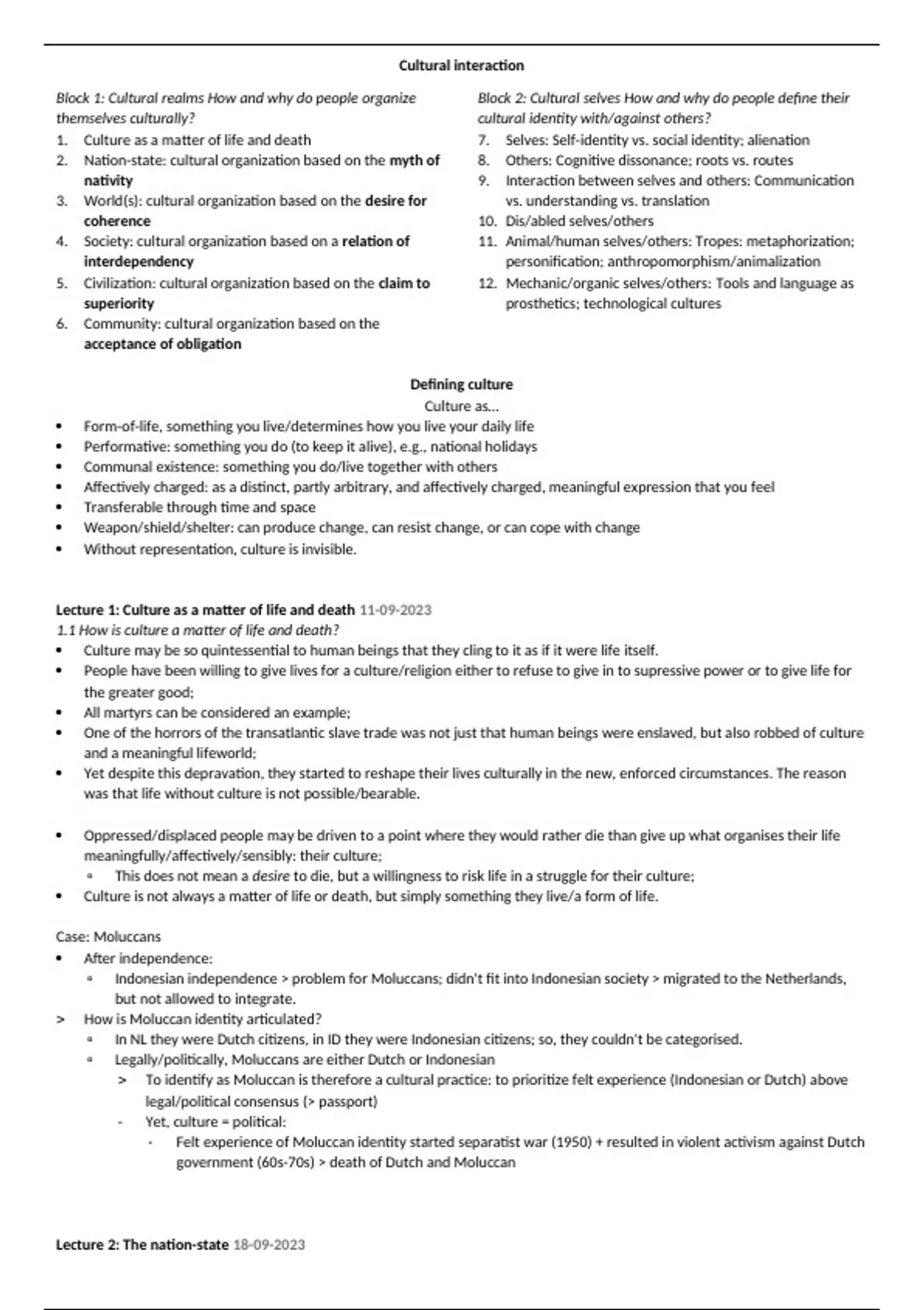 Cultural Interaction: Conflict and Cooperation - completed lecture notes