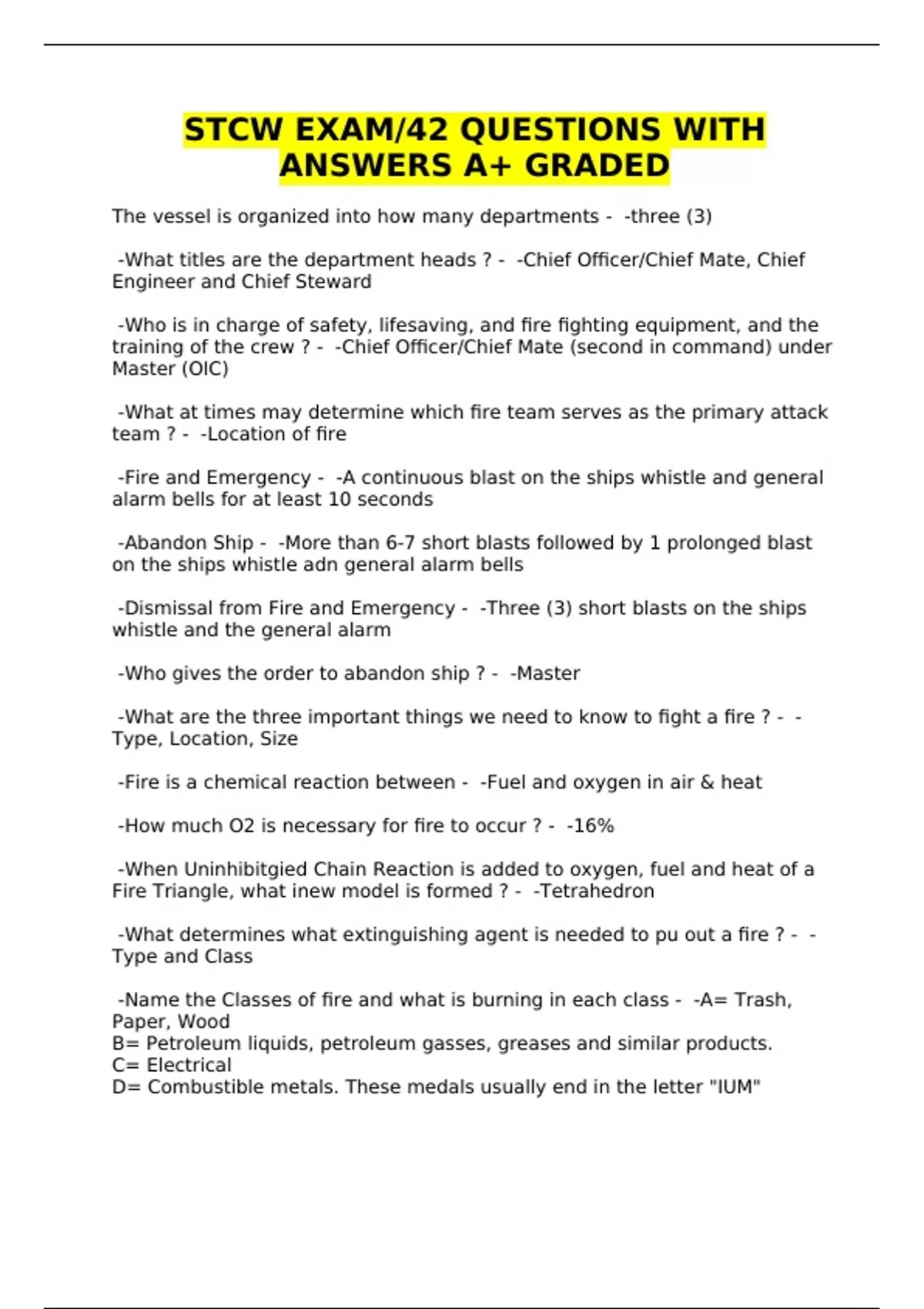 STCW EXAM/42 QUESTIONS WITH ANSWERS A+ GRADED