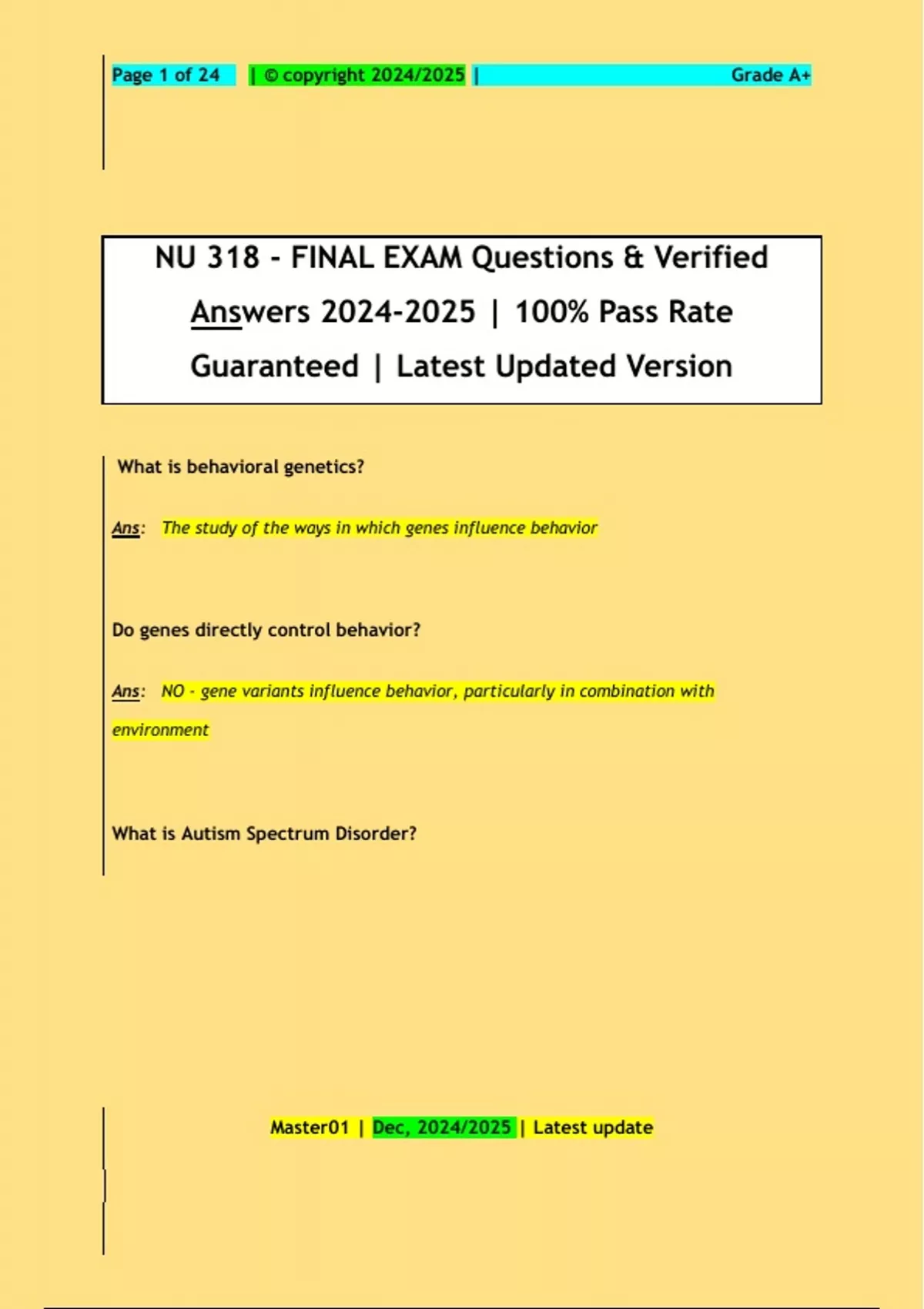NU 318 - FINAL EXAM Questions & Verified Answers | 100% Pass Rate Guaranteed | Latest Updated Version