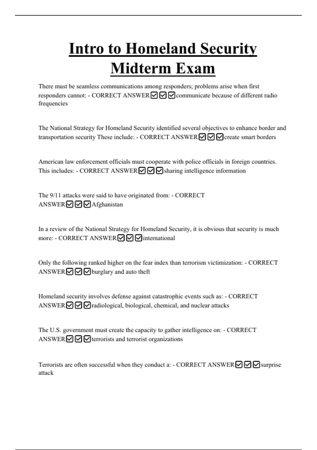 Intro to Homeland Security Midterm Exam There must be seamless communications among responders; problems arise when first responders cannot: - CORRECT ANSWERcommunicate because of different radio frequencies