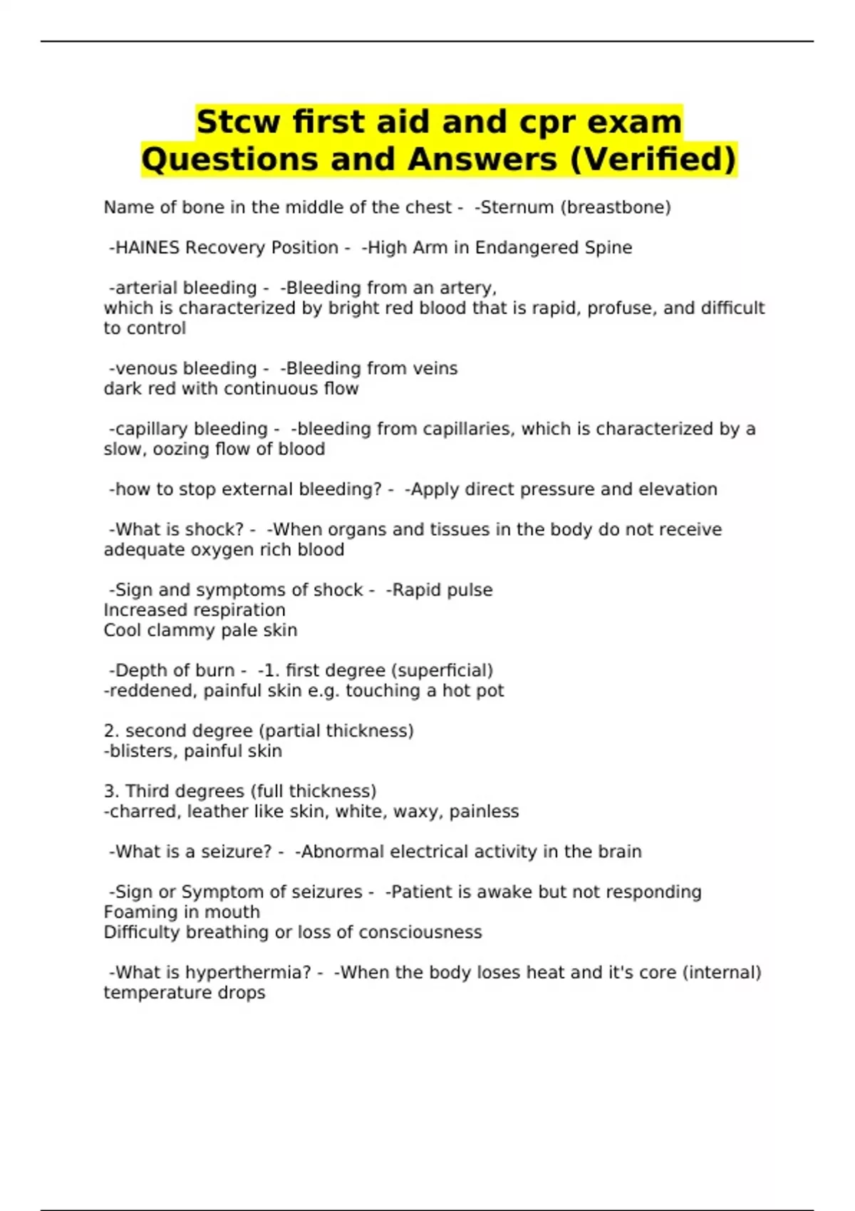 Stcw first aid and cpr exam
