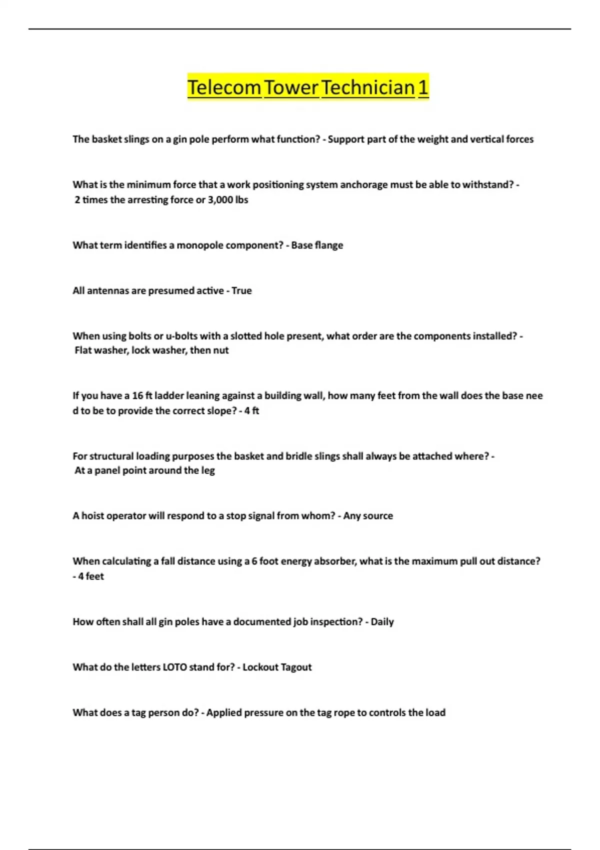 Telecom Tower Technician 1 study guide