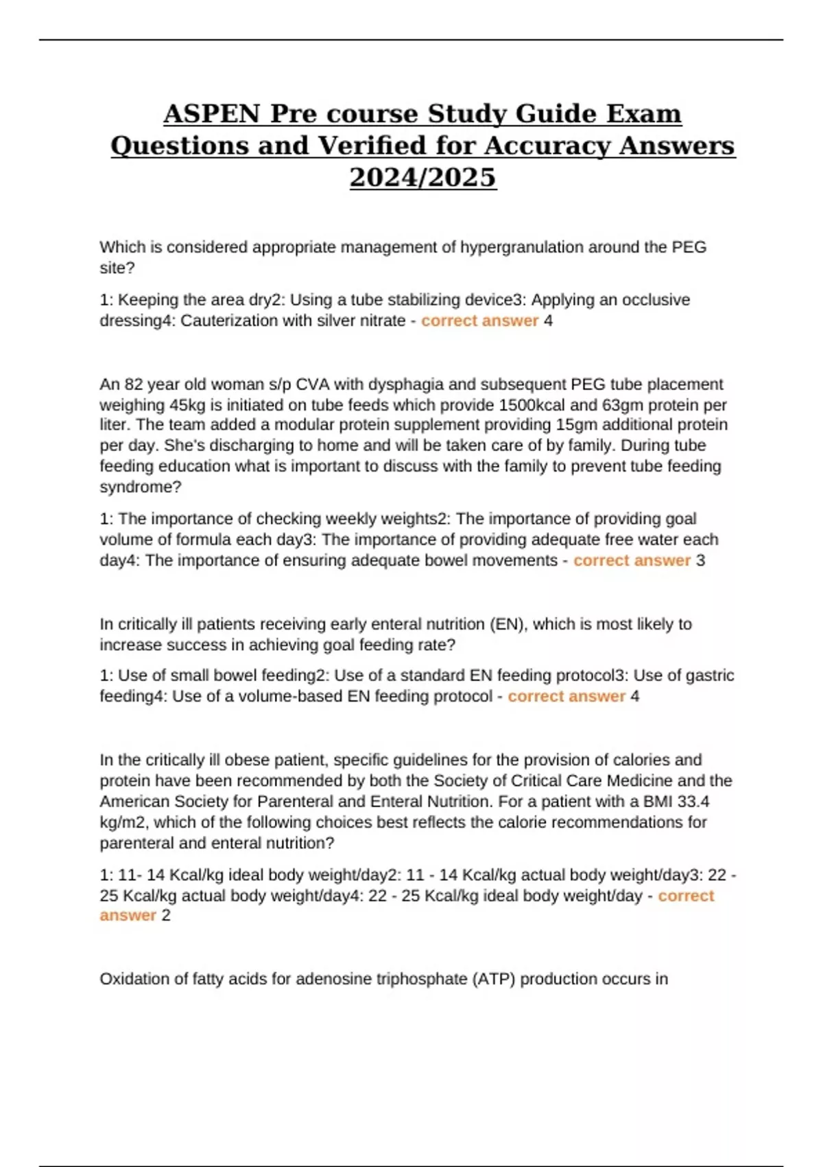 1: Peripheral parenteral nutrition2: High calorie diet with a calorie count3: Structured