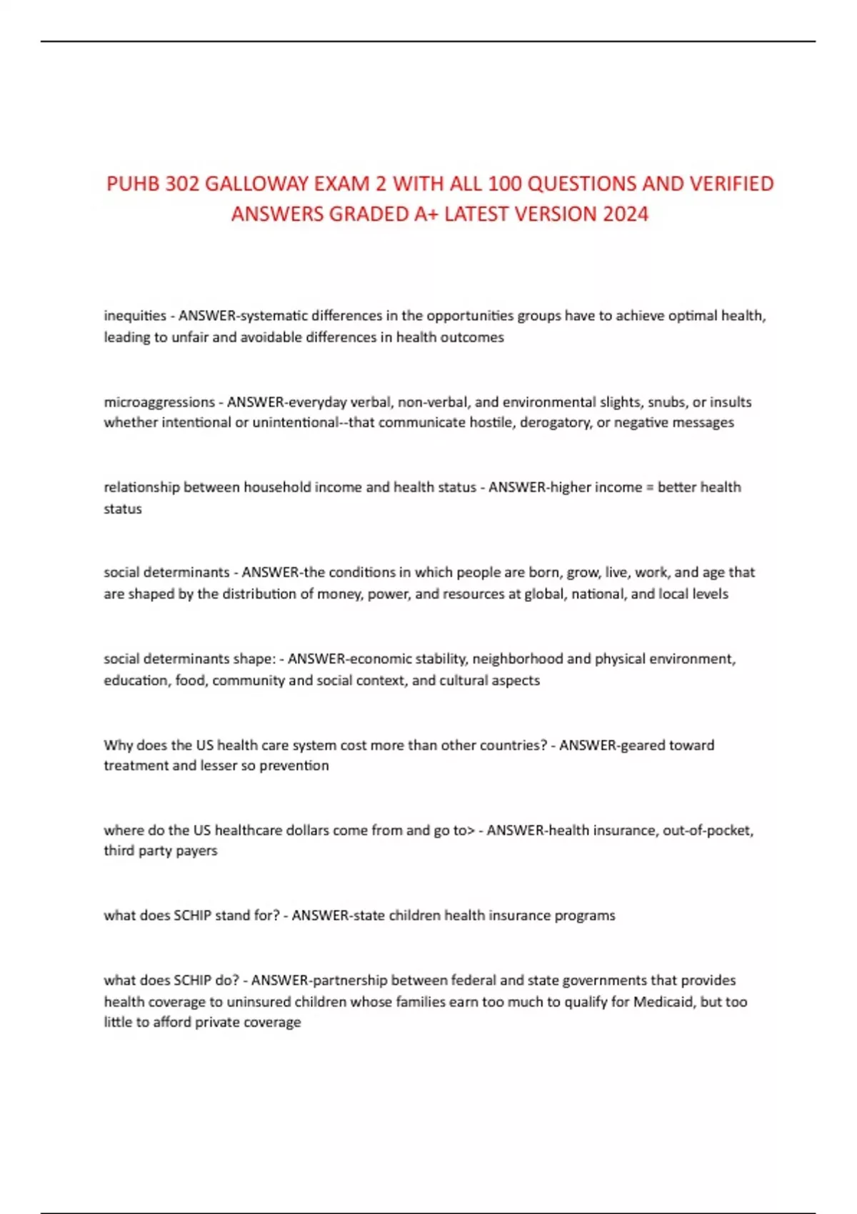 PUHB 302 GALLOWAY EXAM 2 WITH ALL 100 QUESTIONS AND VERIFIED