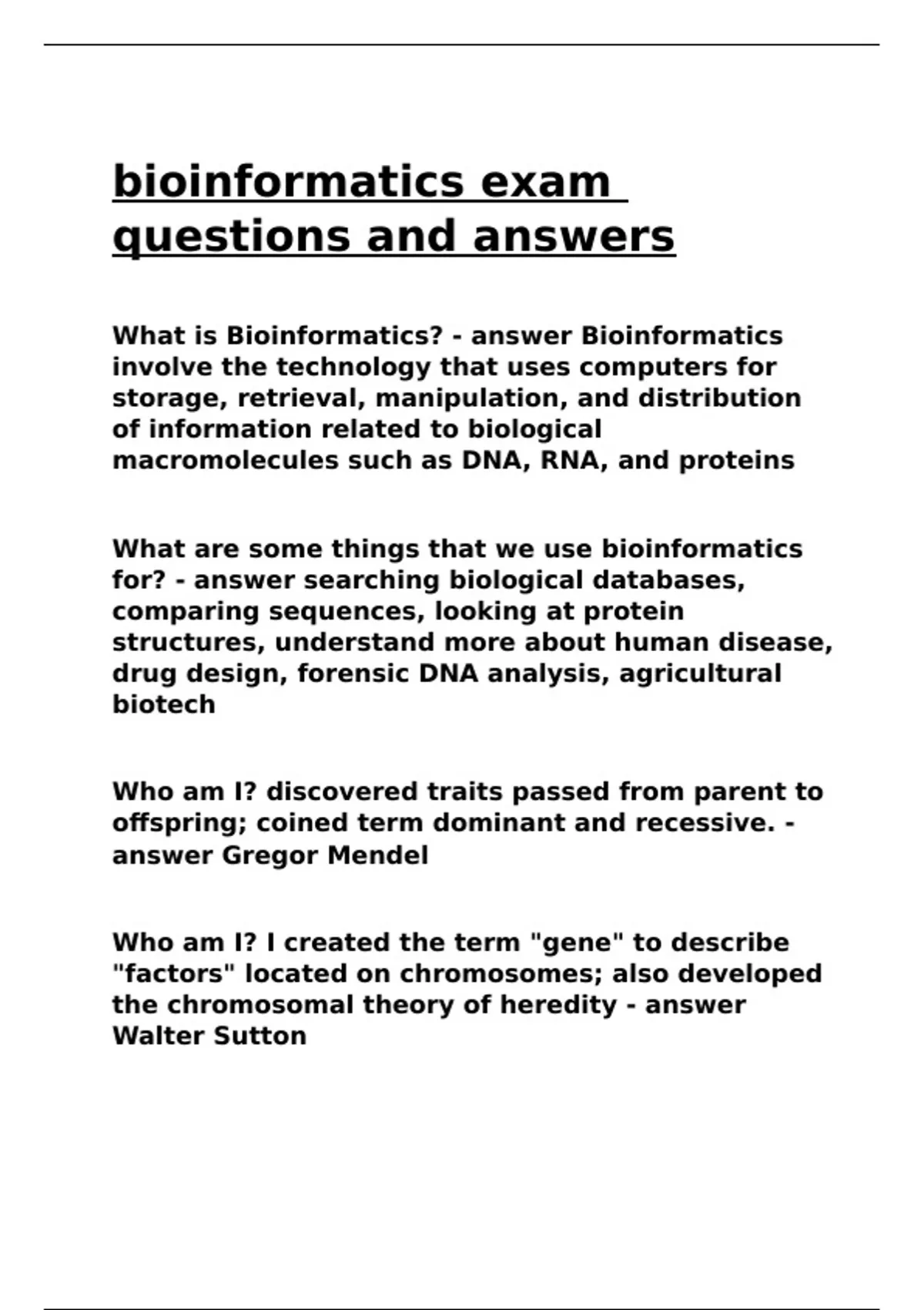 bioinformatics exam questions and answers