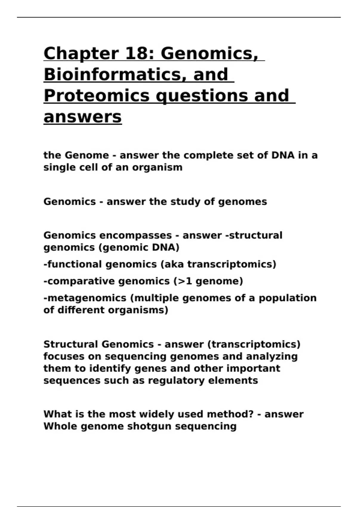 Chapter 18 Genomics, Bioinformatics, and Proteomics questions and answers
