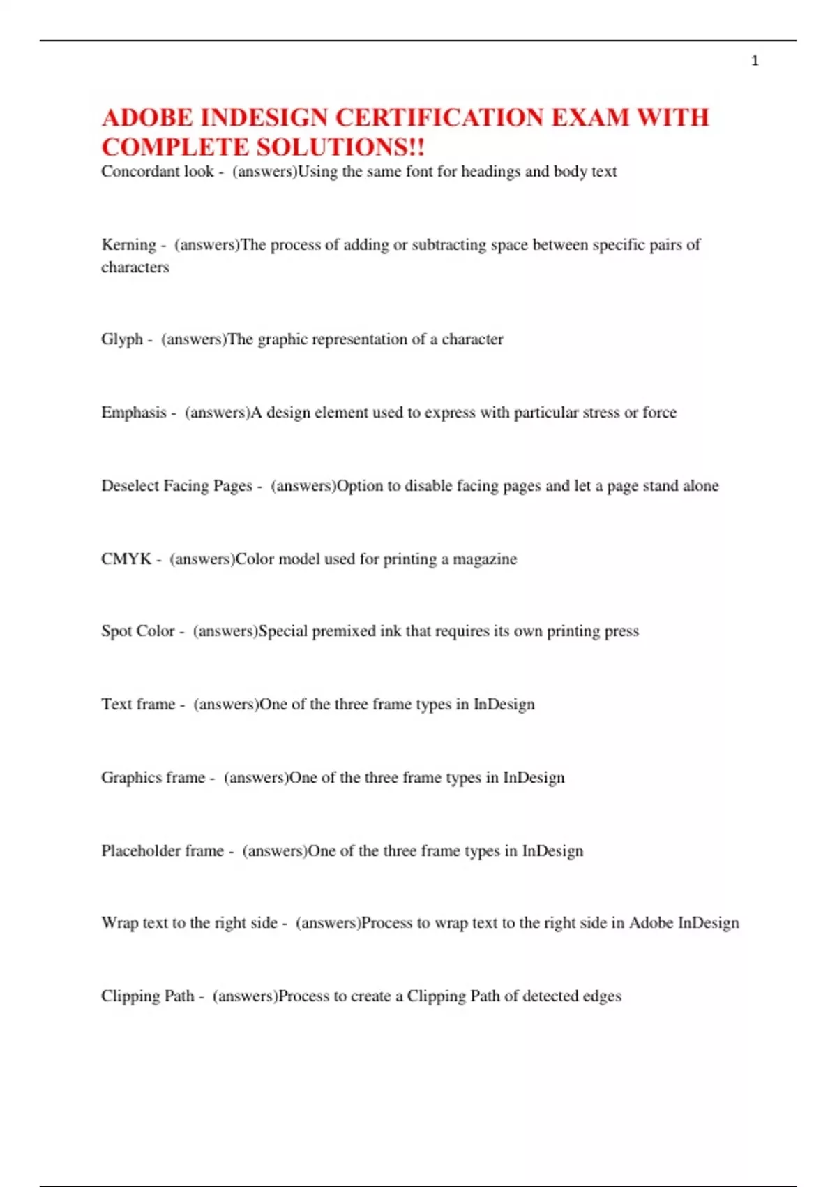 ADOBE INDESIGN CERTIFICATION EXAM WITH COMPLETE SOLUTIONS!!