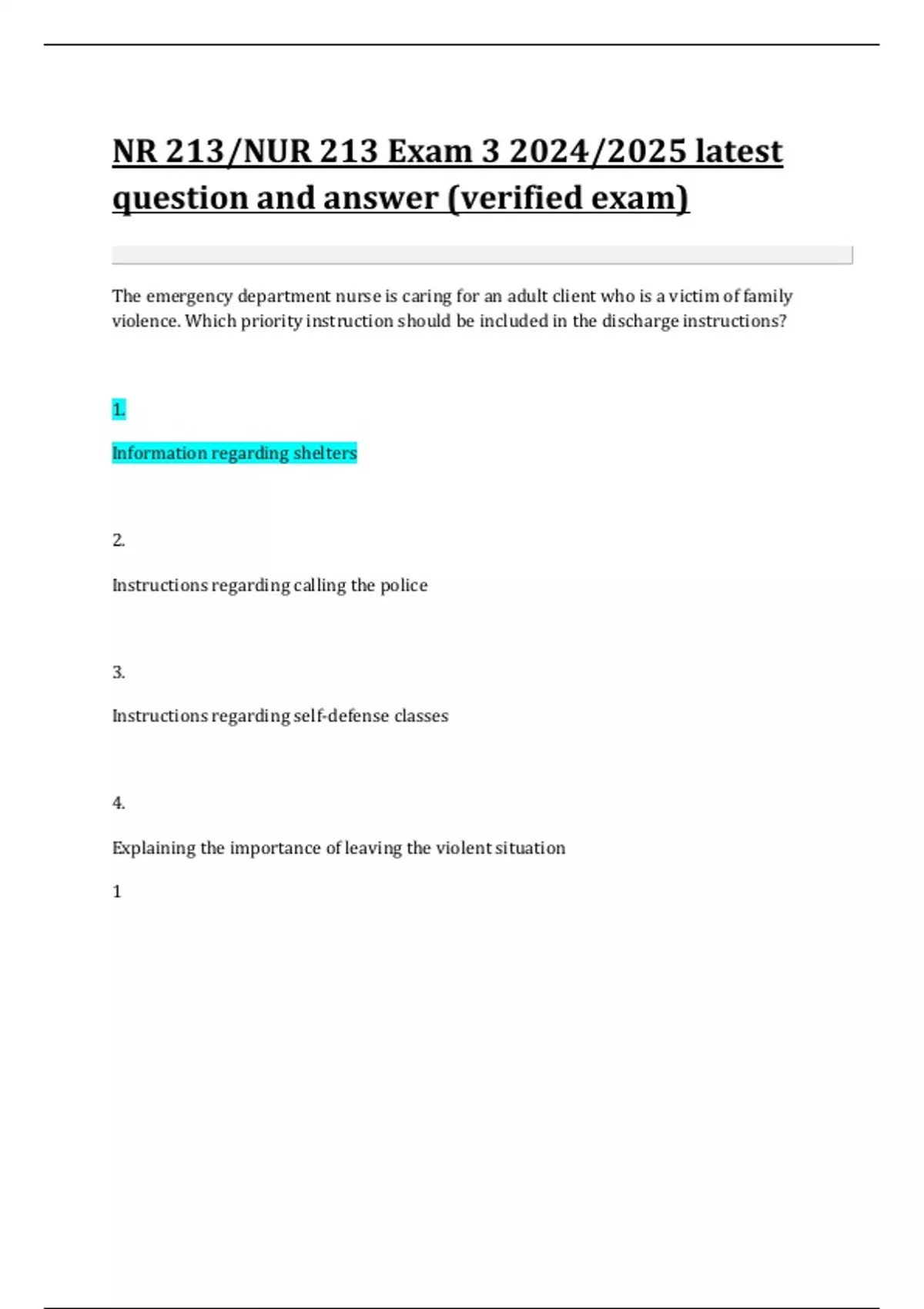 violence. Which priority instruction should be included in the discharge instructions?