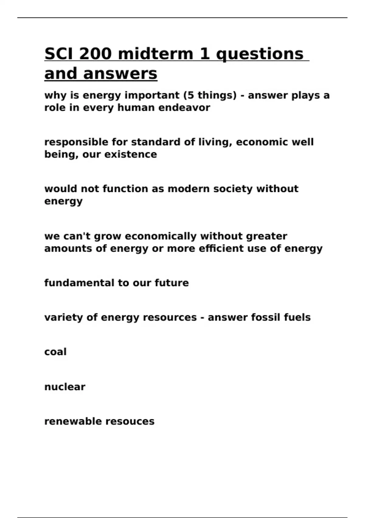 variety of energy resources - answer fossil fuels