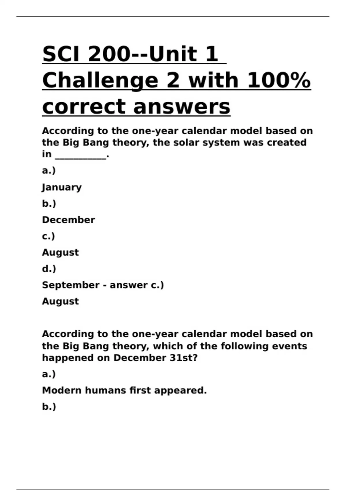 correct answers