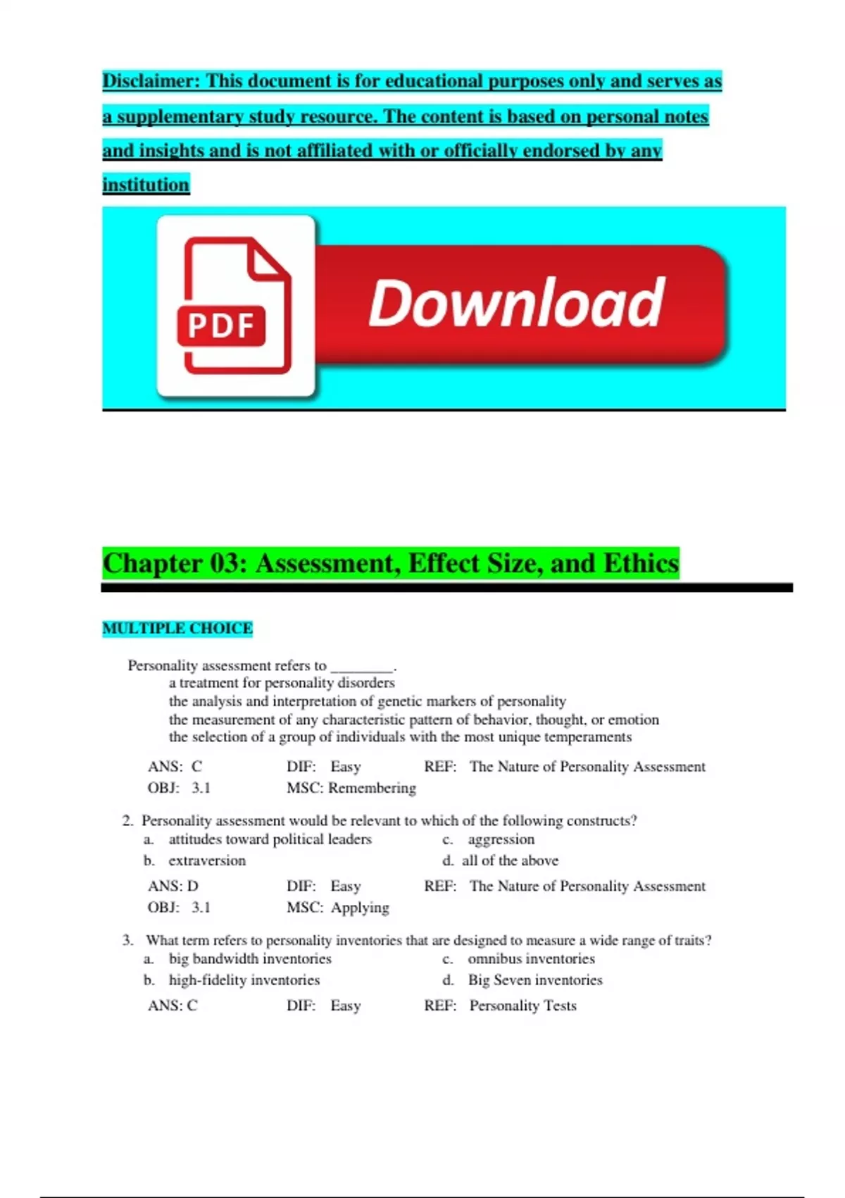 Chapter 03: Assessment, Effect Size, and Ethics