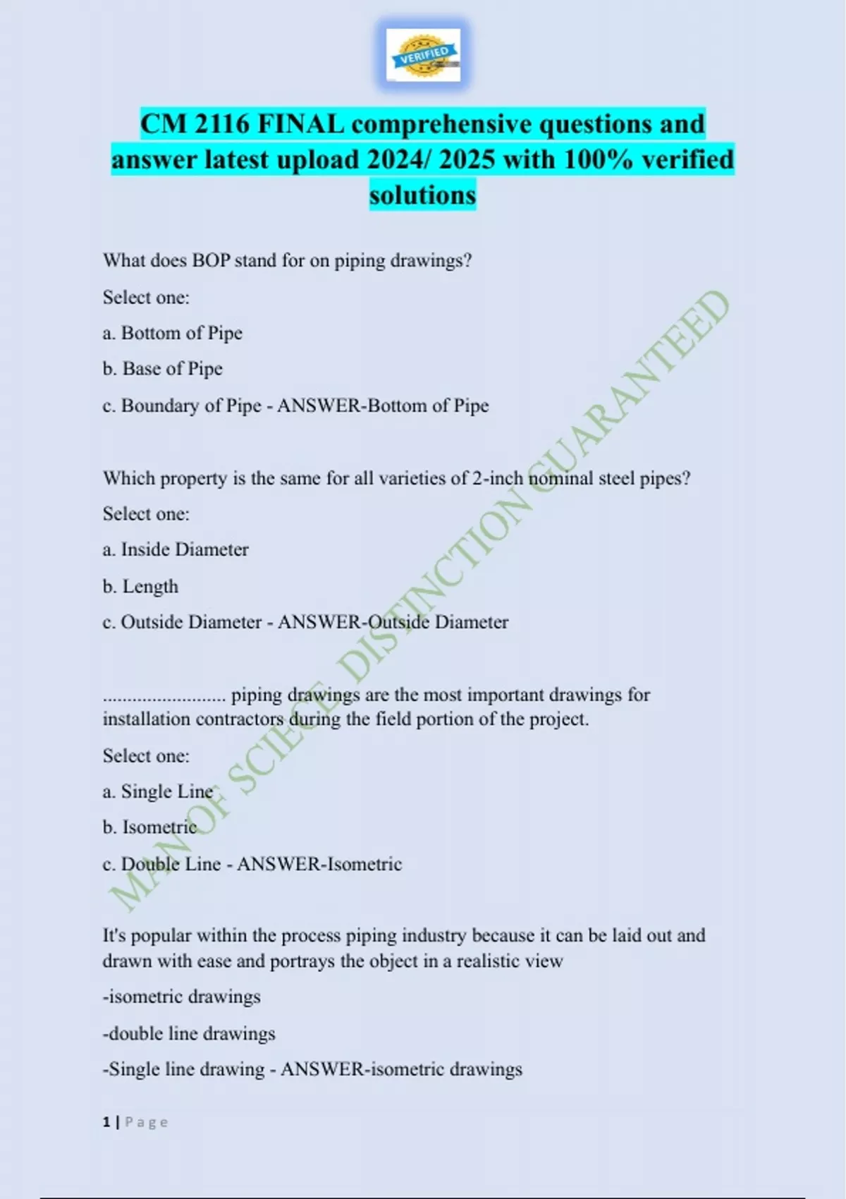 CM 2116 FINAL comprehensive questions and answer latest upload 2024/ 2025 with 100% verified solutions