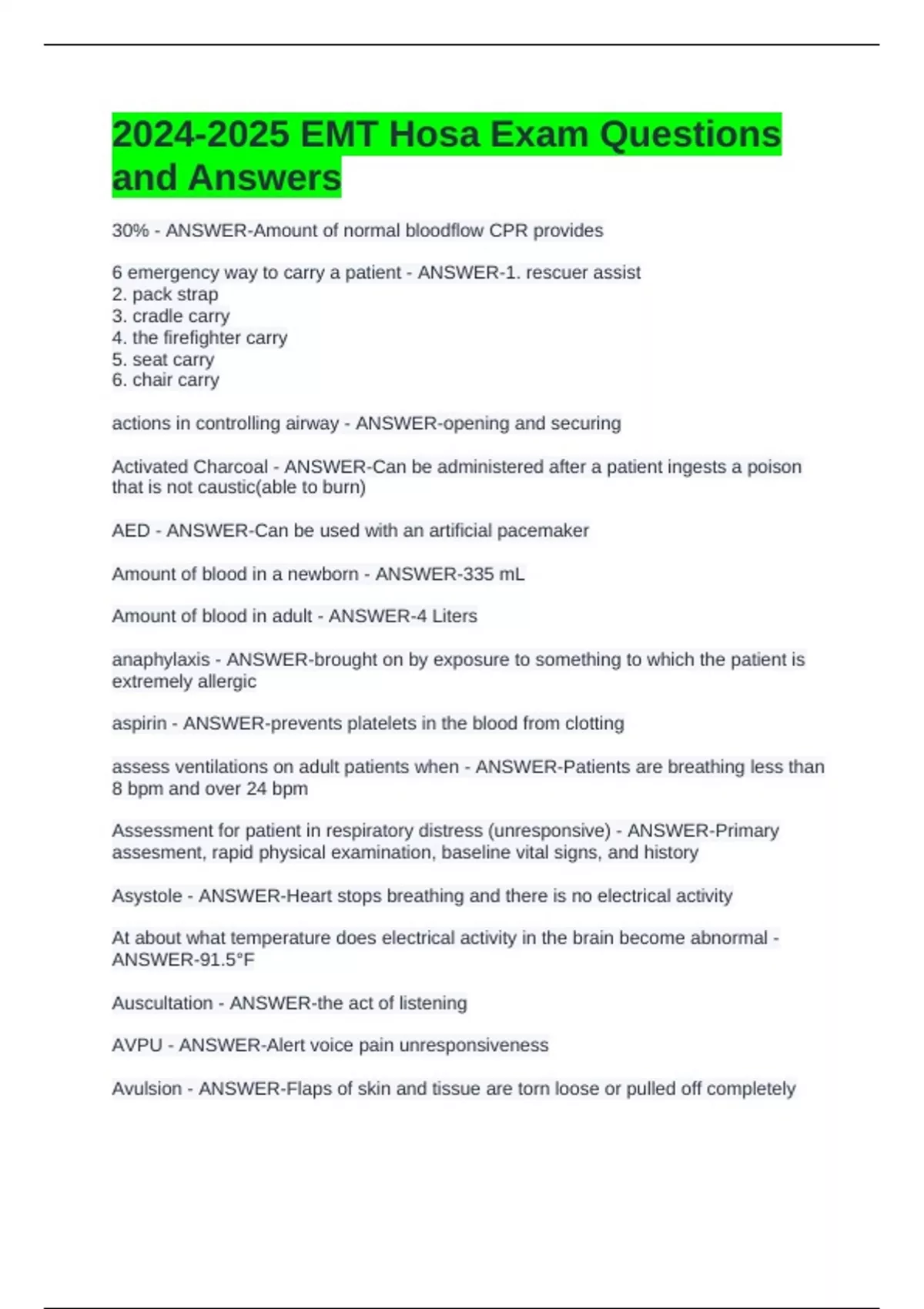 2024-2025 EMT Hosa Exam Questions