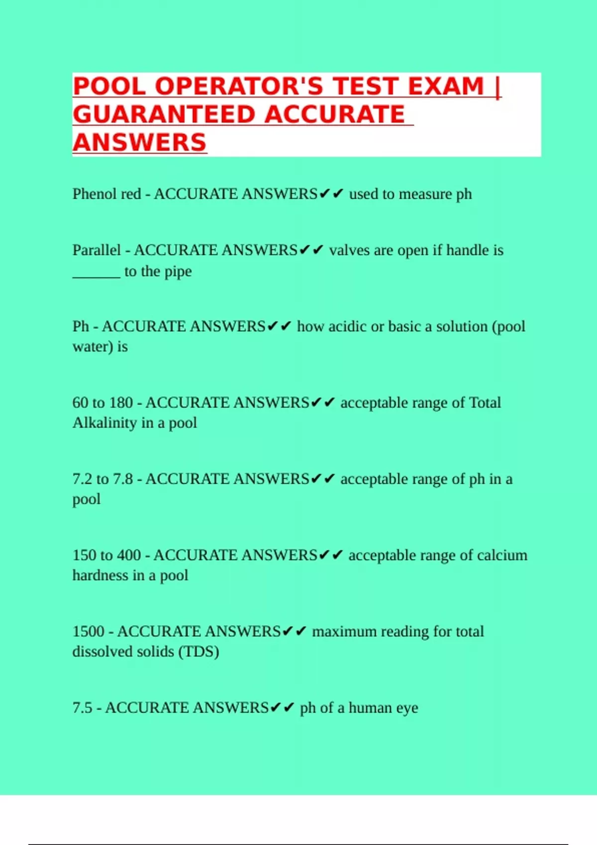 Ph - ACCURATE ANSWERS✔✔ how acidic or basic a solution (pool