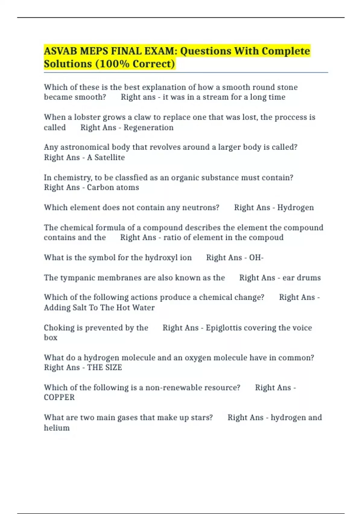 ASVAB MEPS FINAL EXAM: Questions With Complete