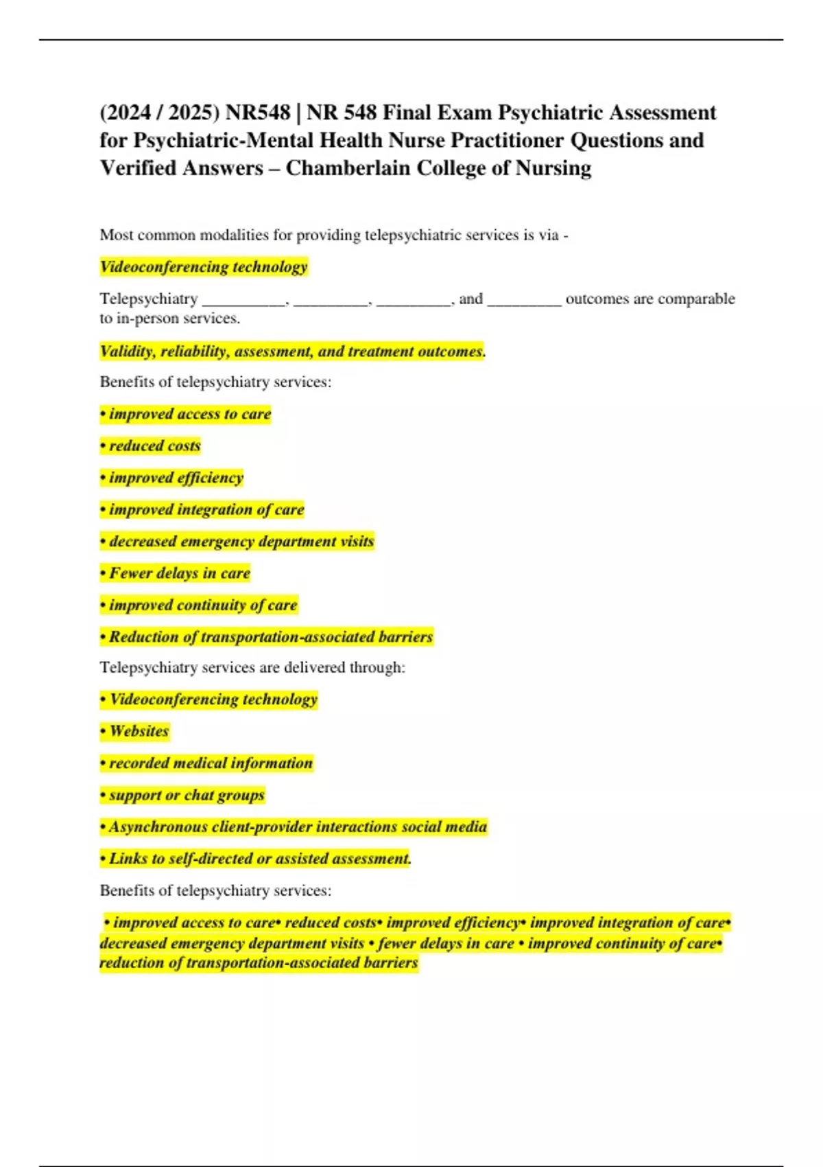 () NR548 | NR 548 Final Exam Psychiatric Assessment