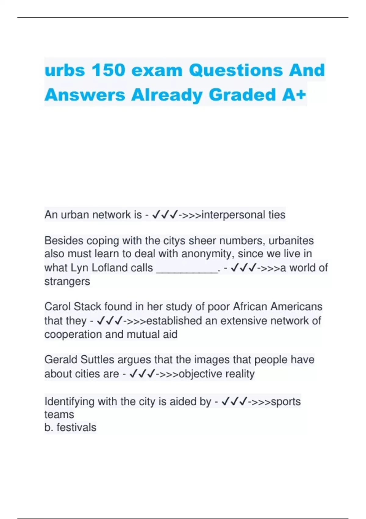 urbs 150 exam Questions And Answers Already Graded A+