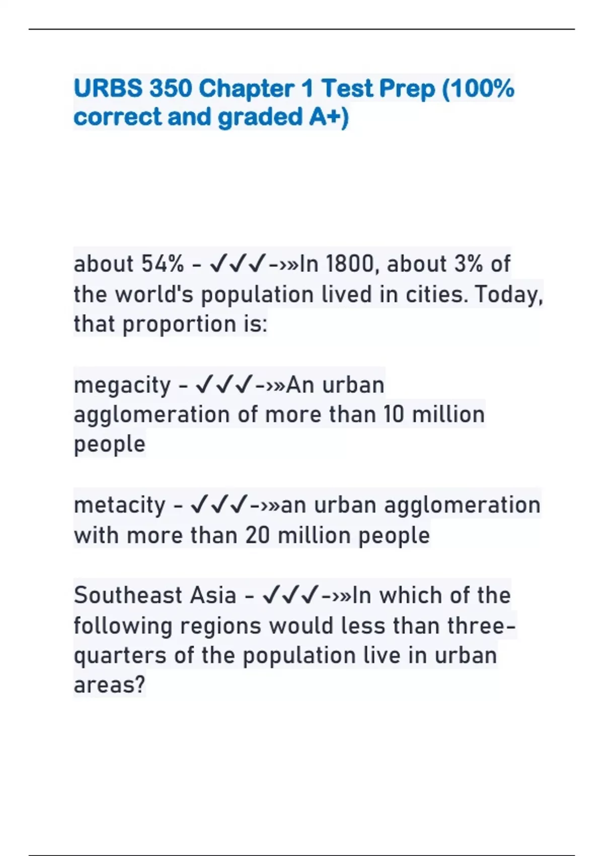 URBS 350 Chapter 1 Test Prep (100% correct and graded A+