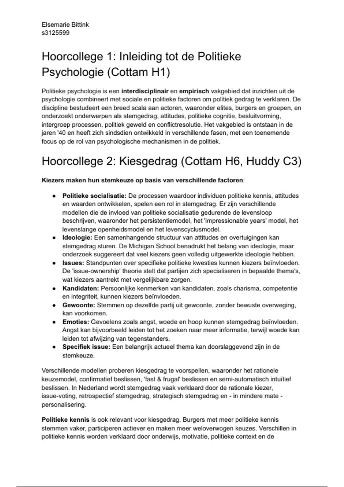 Samenvatting hoorcolleges en literatuur Politieke Psychologie (6442PP17Y)