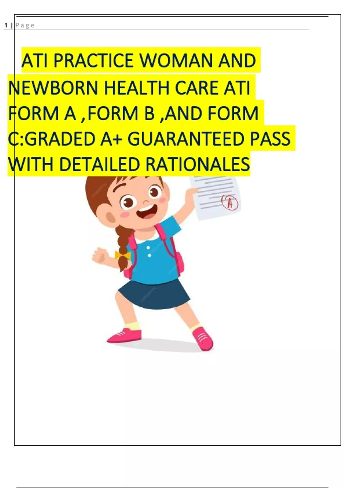 ATI PRACTICE WOMAN AND NEWBORN HEALTH CARE ATI FORM A , FORM B ,AND FORM C:GRADED A+ GUARANTEED PASS WITH DETAILED RATIONALES