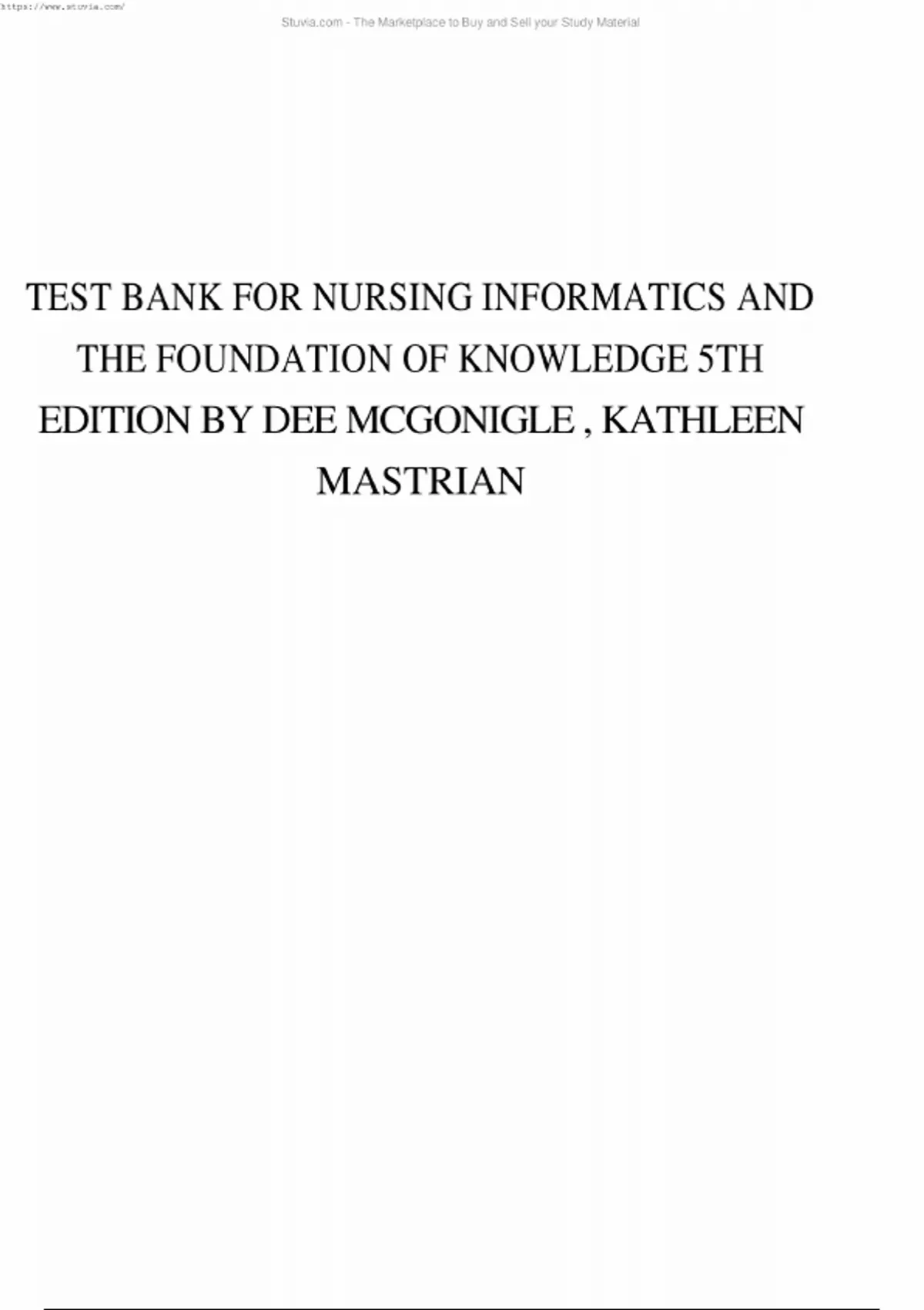 Test Bank For Nursing Informatics and the Foundation of Knowledge, 5th Edition, By Dee Mcgonigle, Kathleen Mastrian All Chapters 1-26 LATEST
