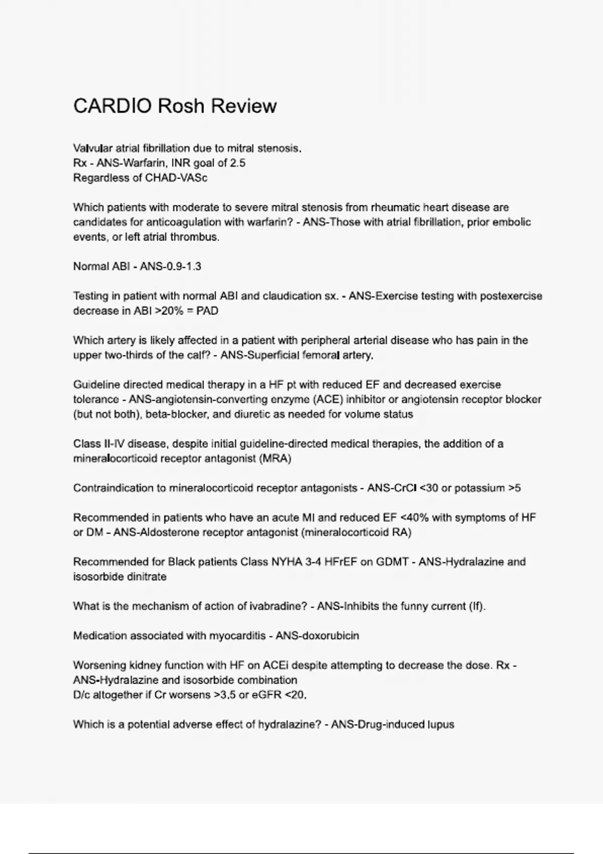 Exam of 9 pages for the course cardio at cardio (CARDIO Rosh Review)