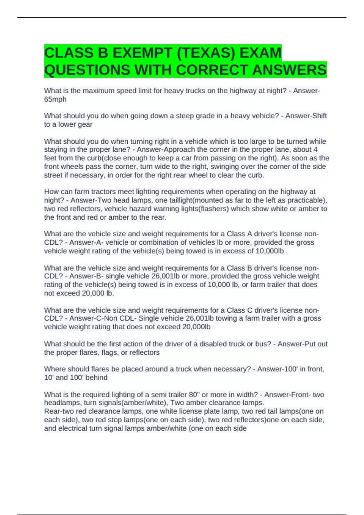 CLASS B EXEMPT (TEXAS) EXAM QUESTIONS WITH CORRECT ANSWERS