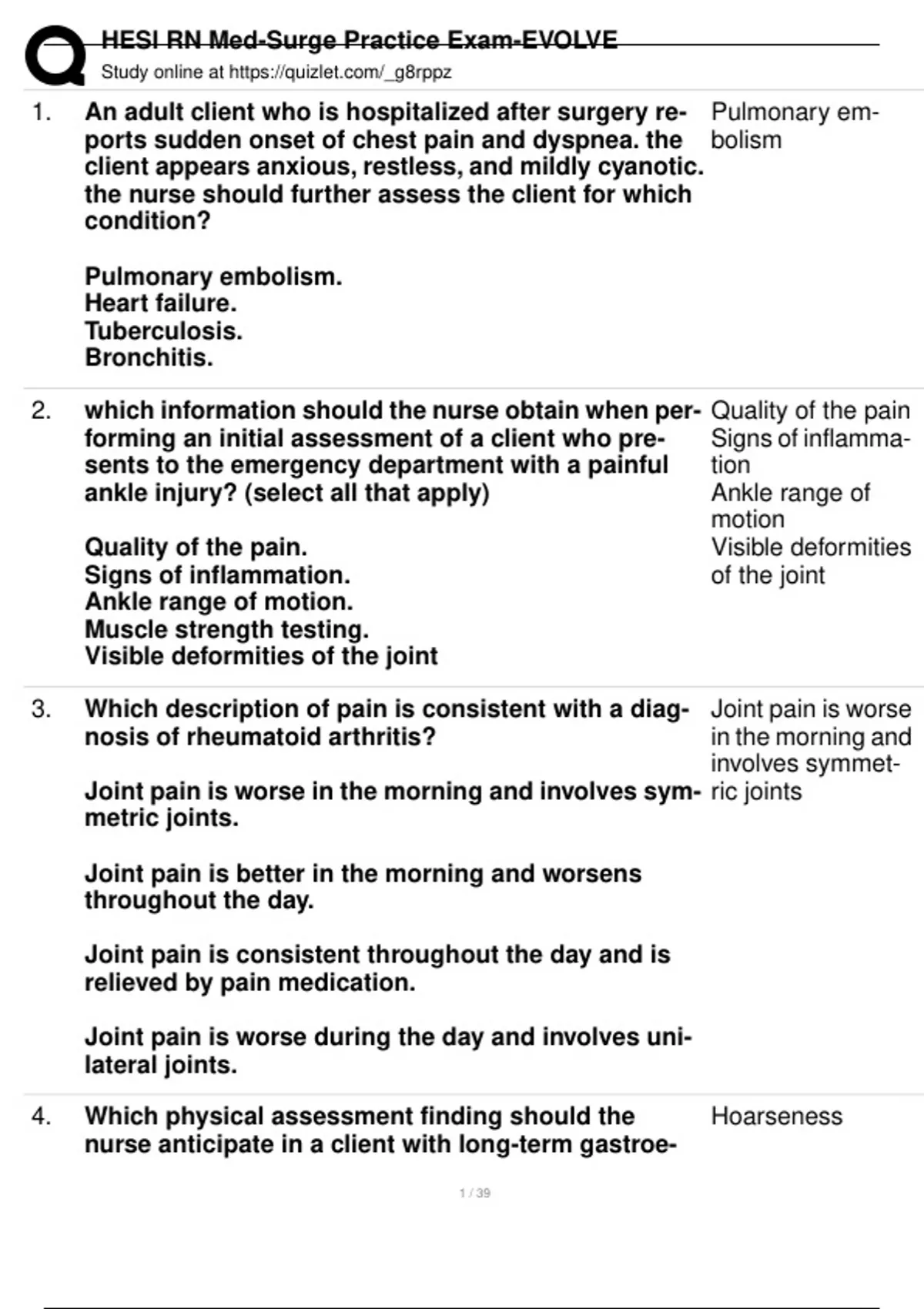 , HESI RN Med-Surge Practice Exam-EVOLVE