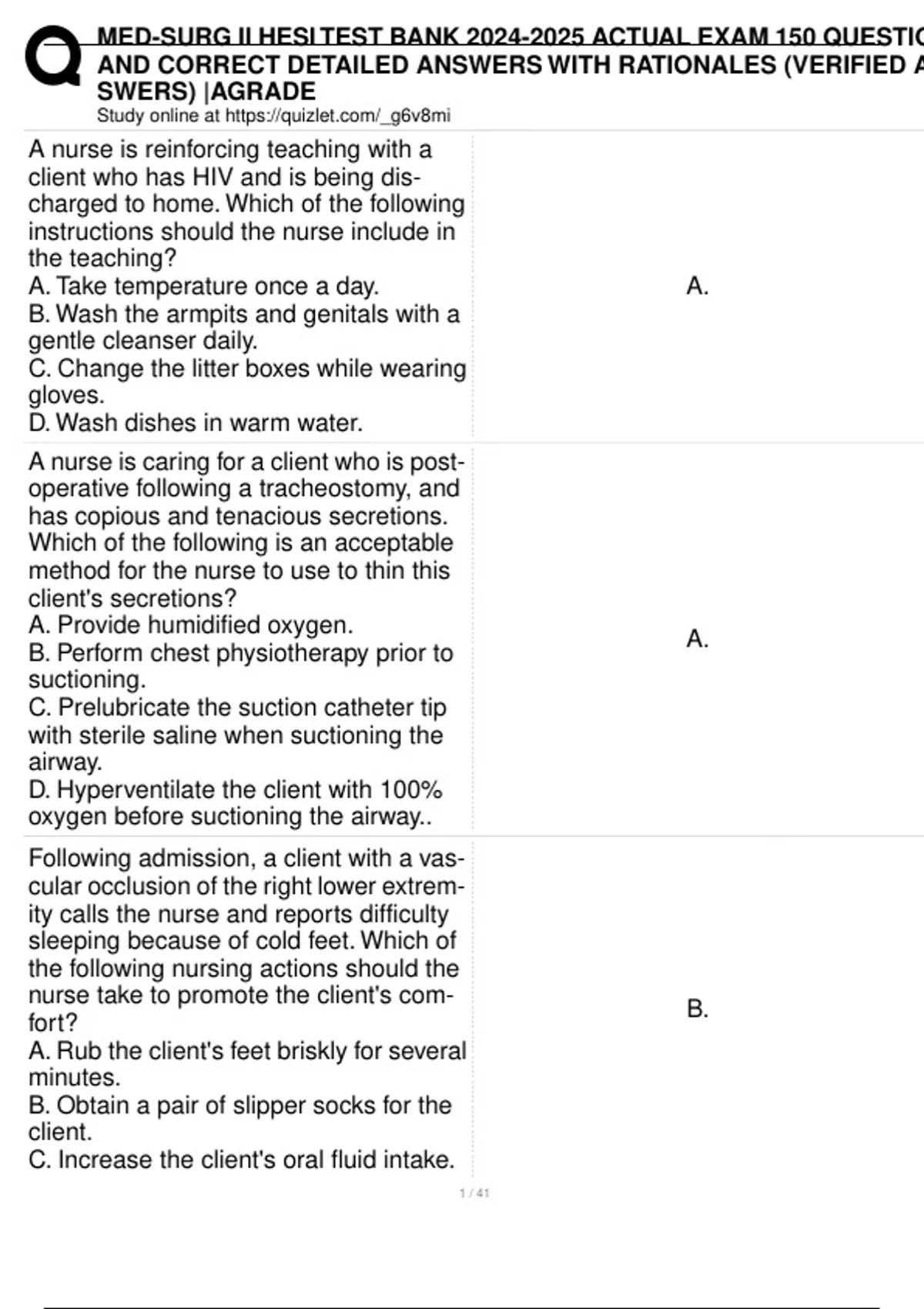 , MED-SURG II HESI TEST BANK 2024-2025 ACTUAL EXAM 150 QUESTIO