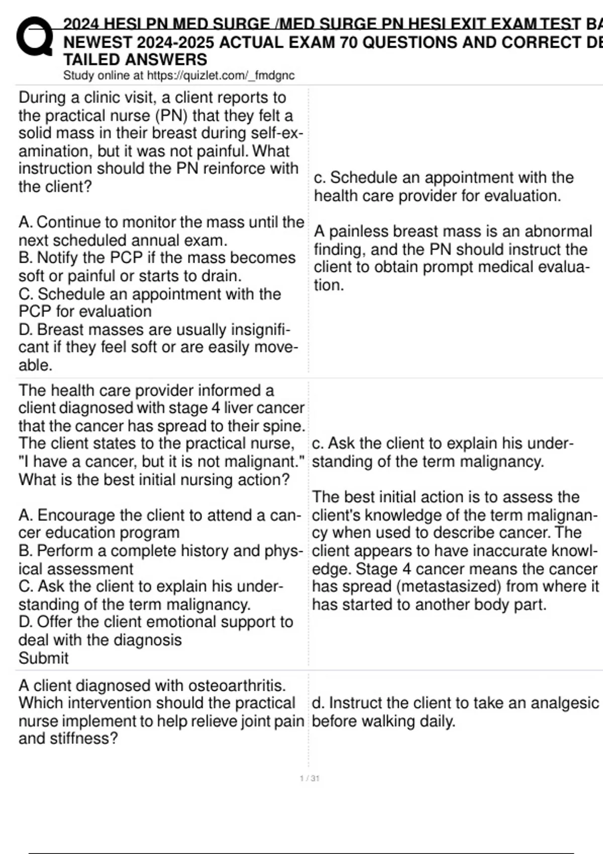 , 2024 HESI PN MED SURGE /MED SURGE PN HESI EXIT EXAM TEST BA