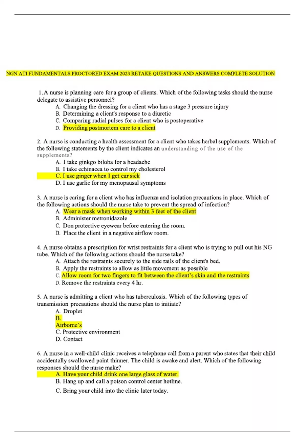 NGN ATI FUNDAMENTALS PROCTORED EXAM 2023 RETAKE QUESTIONS AND ANSWERS