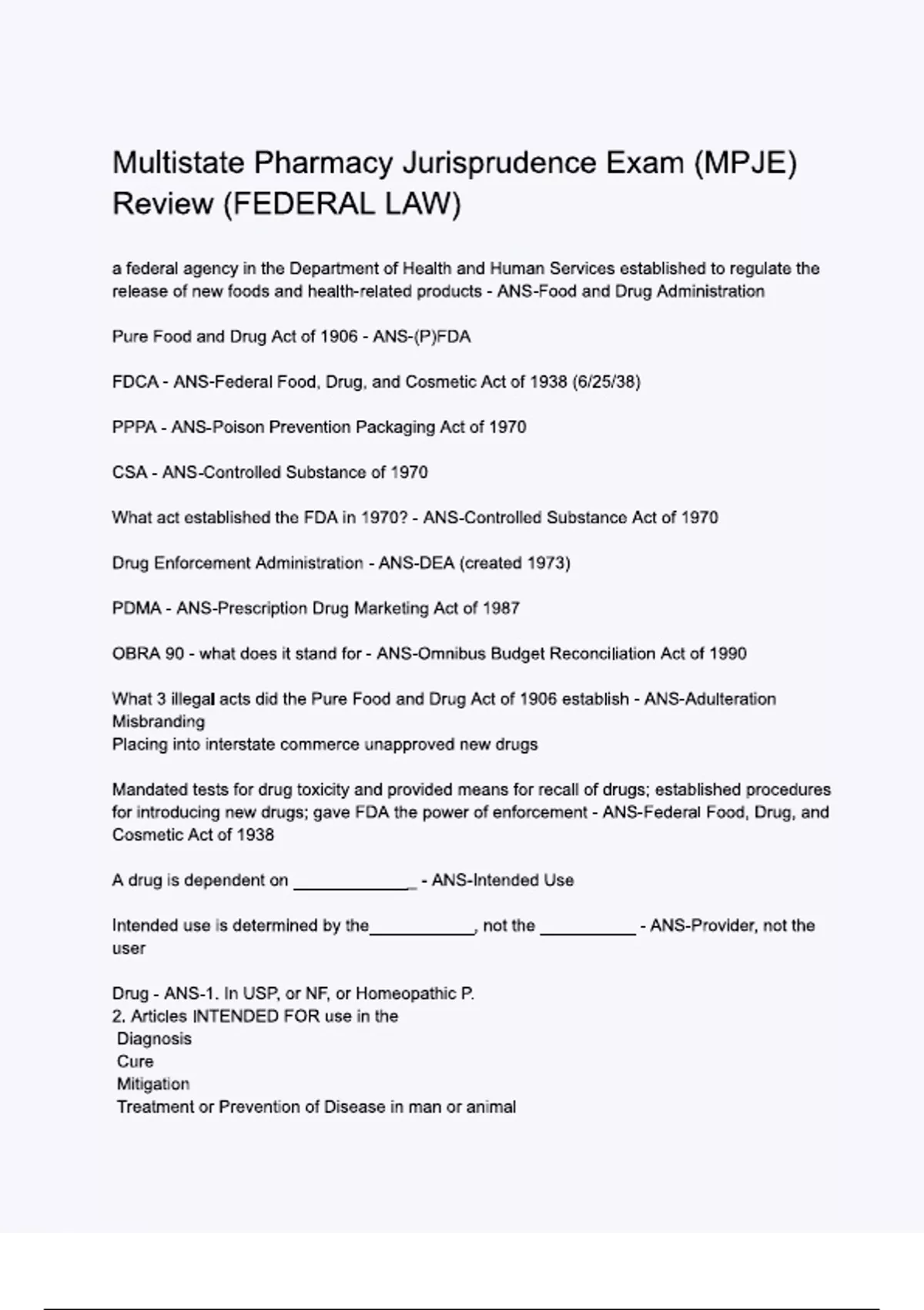 Multistate Pharmacy Jurisprudence Exam (MPJE) Review (FEDERAL LAW) Questions and Verified Answers |100% Correct | Complete solution | A+ Grade | Latest Update 2024 / 2025