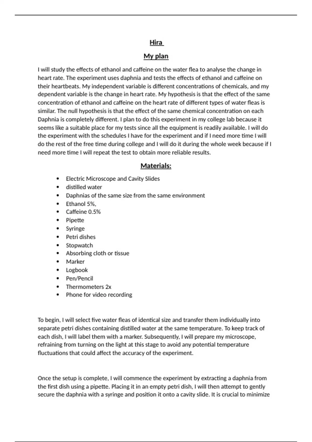 heart rate. The experiment uses daphnia and tests the effects of ethanol and caffeine on