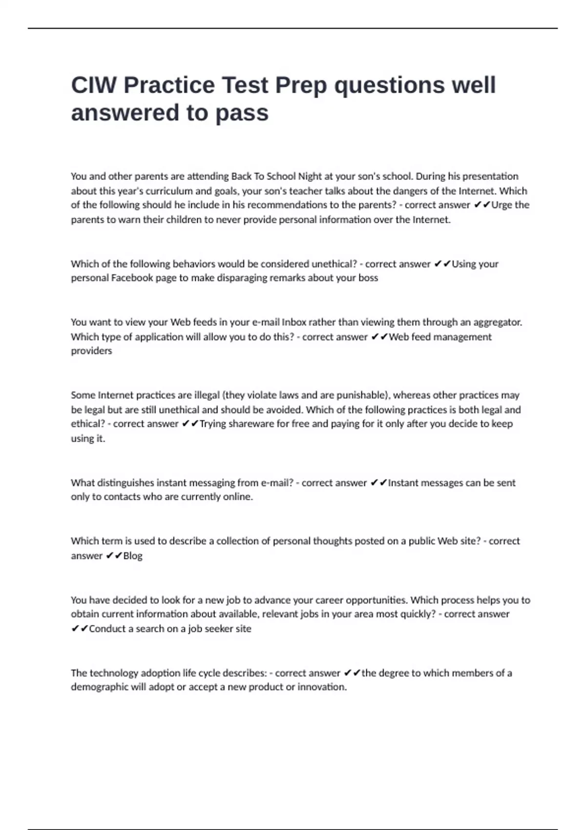 messages to a newsgroup? - correct answer ✔✔A message that is pertinent, appropriate and brief