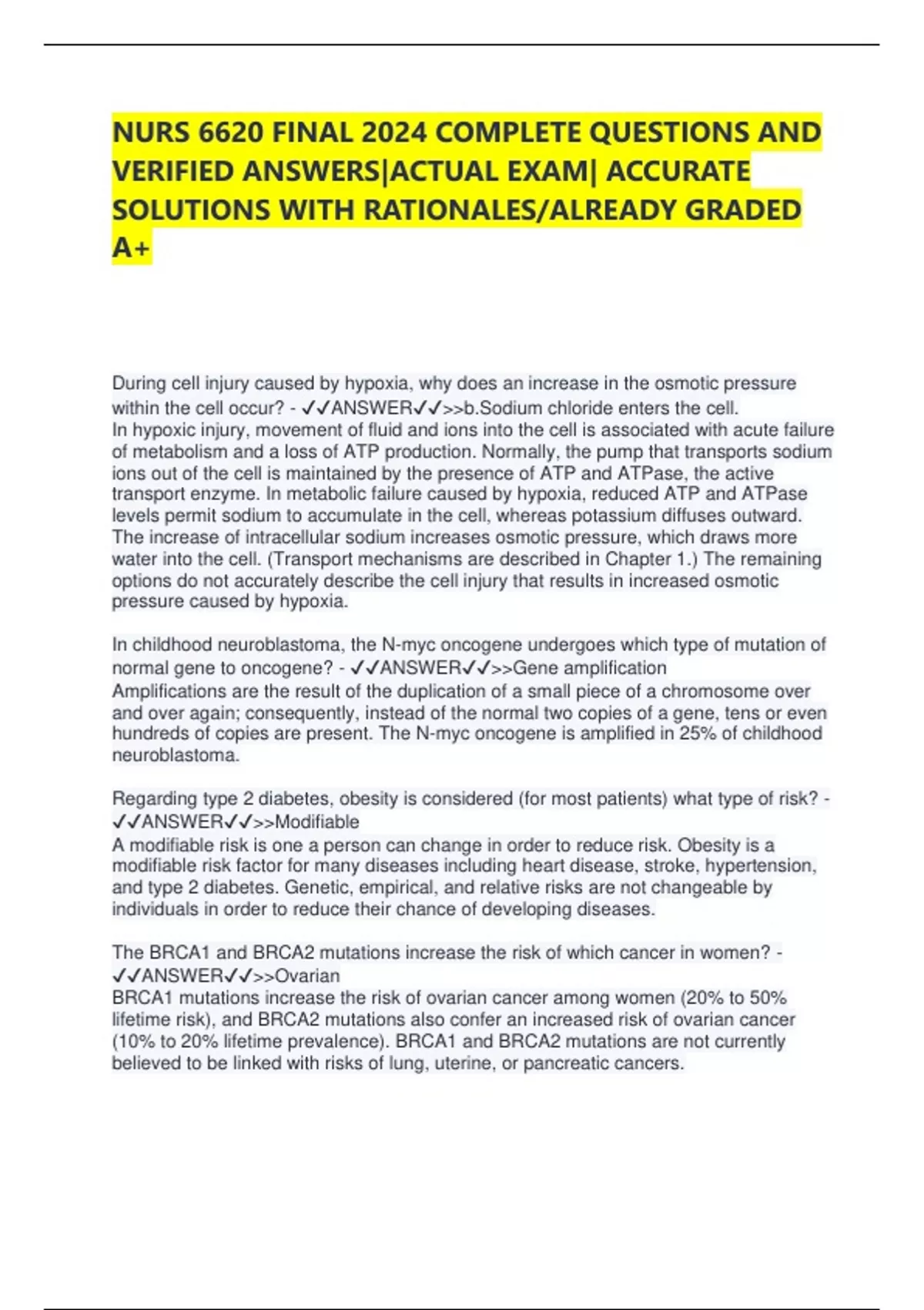 SOLUTIONS WITH RATIONALES/ALREADY GRADED