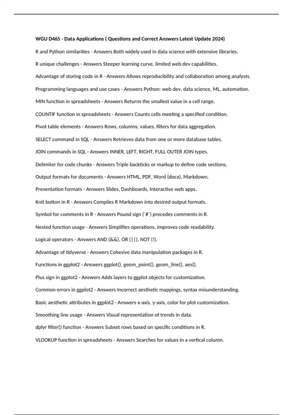 Programming languages and use cases - Answers Python: web dev, data science, ML, automation.