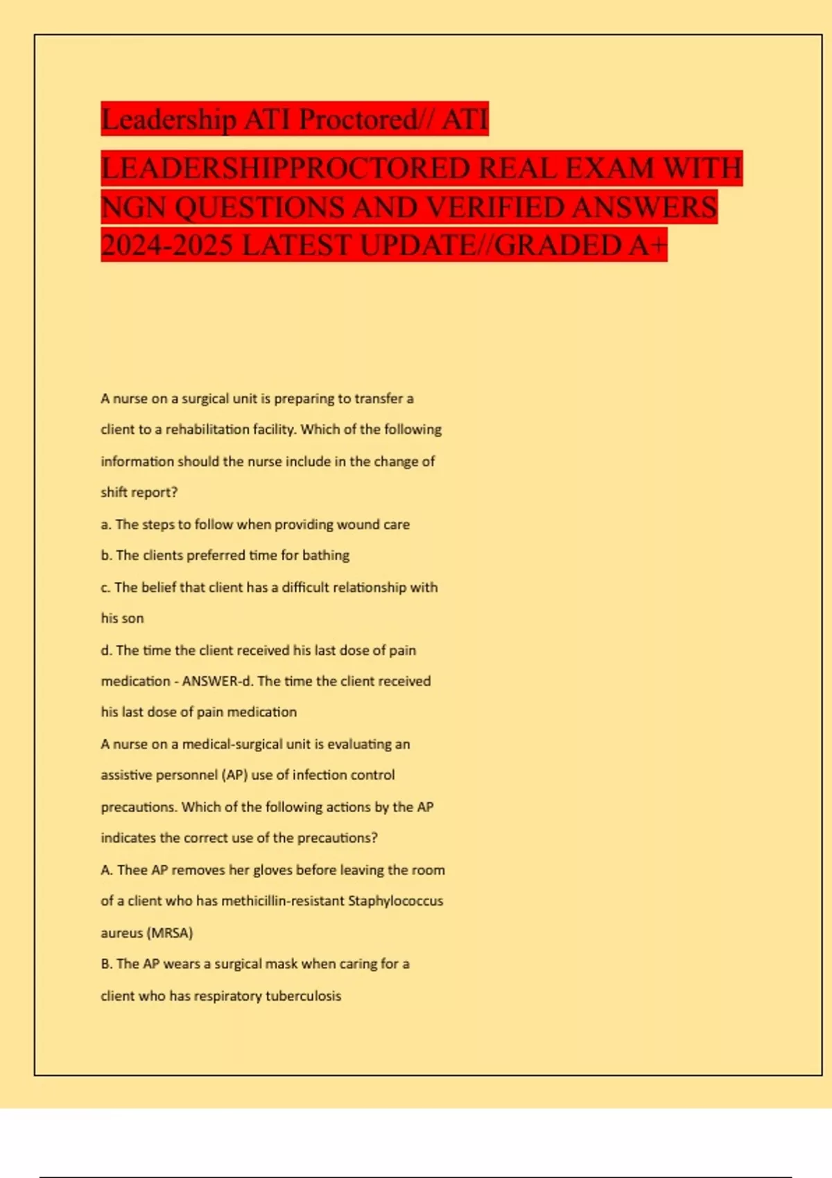 LEADERSHIPPROCTORED REAL EXAM WITH