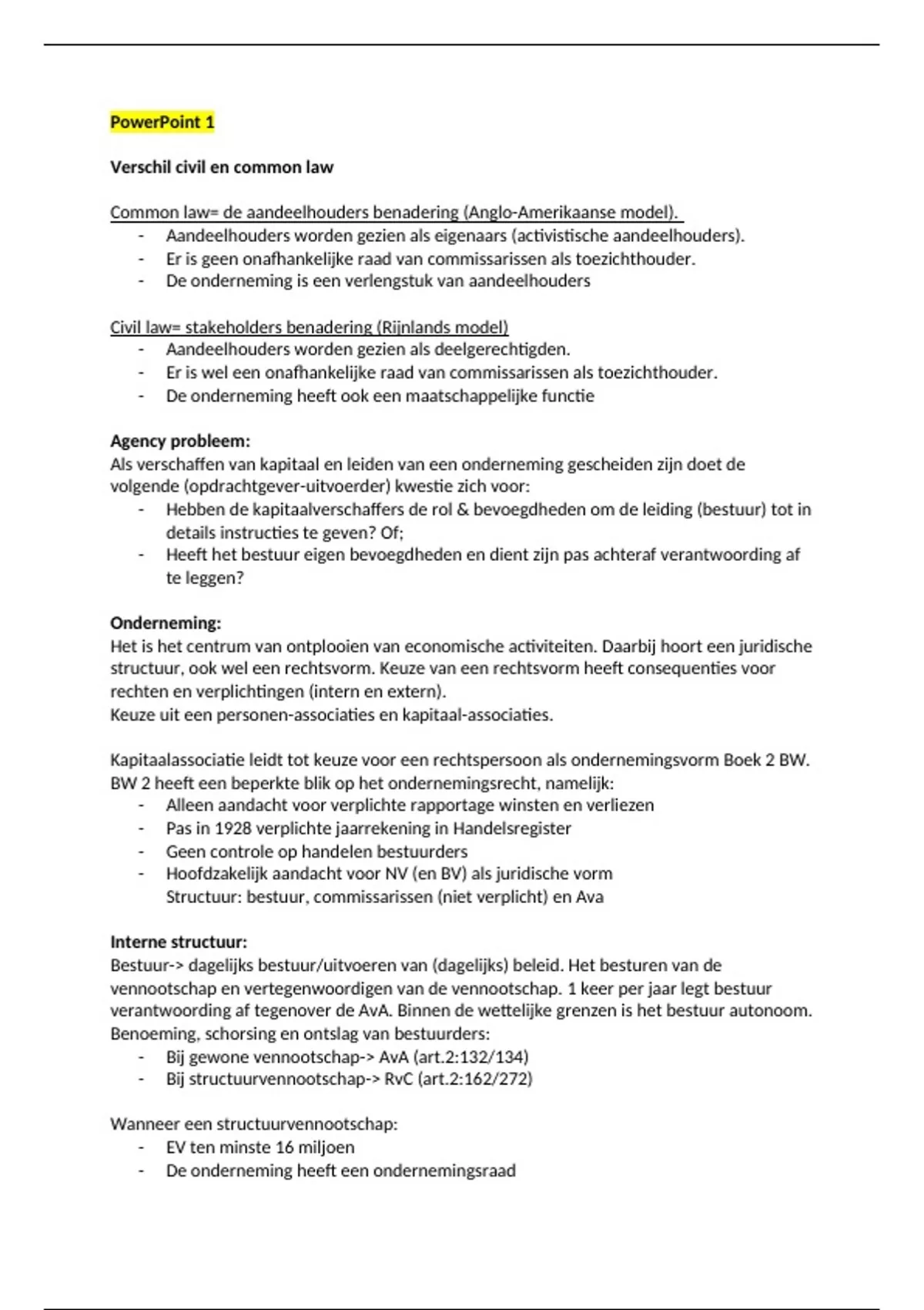 Samenvatting van 11 pagina's voor het vak Corporate governance aan de HvA