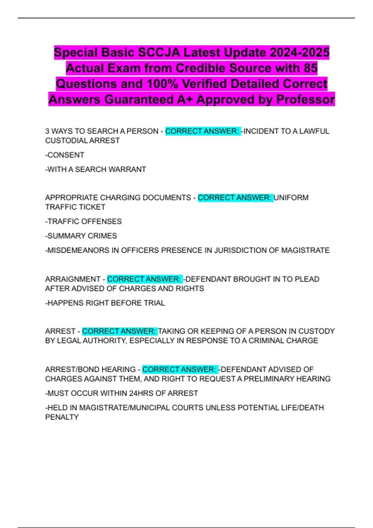 Special Basic SCCJA Latest Update Actual Exam from Credible Source with 85 Questions and 100% Verified Detailed Correct Answers Guaranteed A+ Approved by Professor