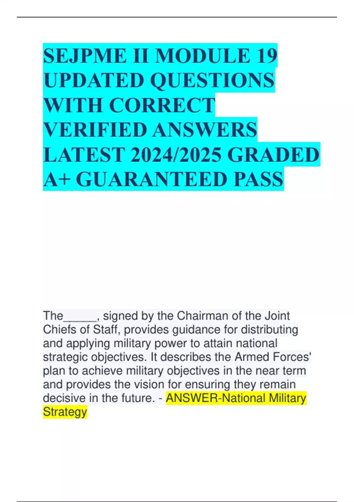 SEJPME II MODULE 19 UPDATED QUESTIONS WITH CORRECT VERIFIED ANSWERS LATEST 2024/2025 GRADED A+ GUARANTEED