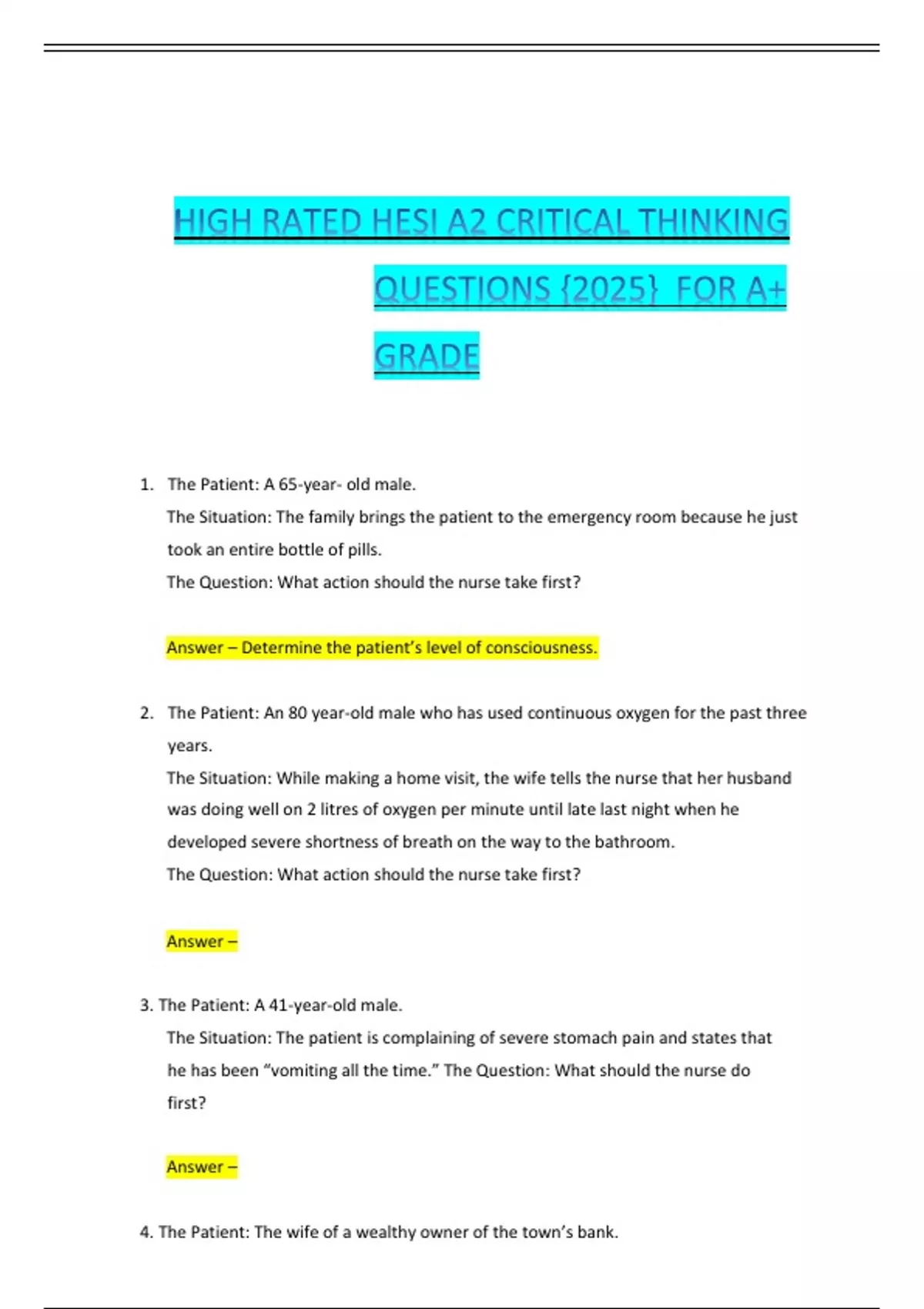The Question: It is most important for the nurse to obtain information about which