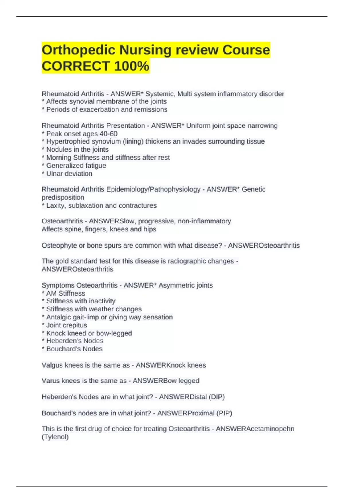 Osteoarthritis - ANSWERSlow, progressive, non-inflammatory