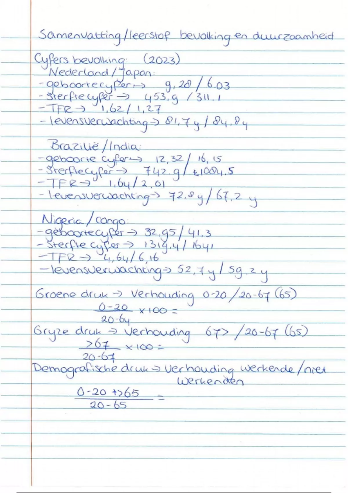 Het document is gemaakt voor het tentamen bevolking- en duurzaamheidsvraagstukken op de HU 1e graads aardrijkskunde docent master. Het is een samenvatting van college aantekeningen, artikelen en het bijbehorende boek. Niet alle hoofdstukken uit het boek die benodigd waren voor het tentamen staan erin uitgewerkt.