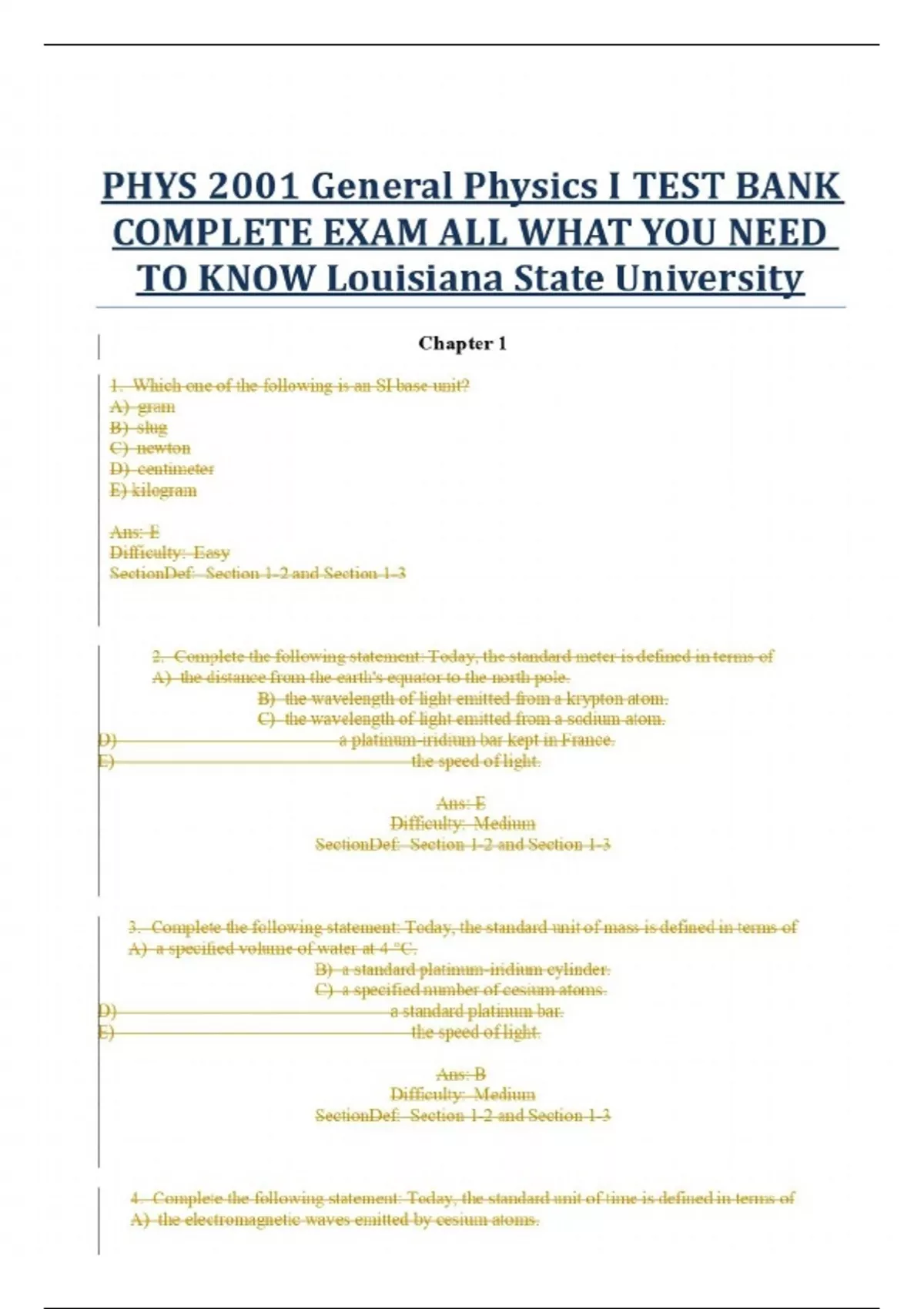 PHYS 2001 General Physics I TEST BANK COMPLETE EXAM ALL WHAT YOU NEED TO KNOW Louisiana State University