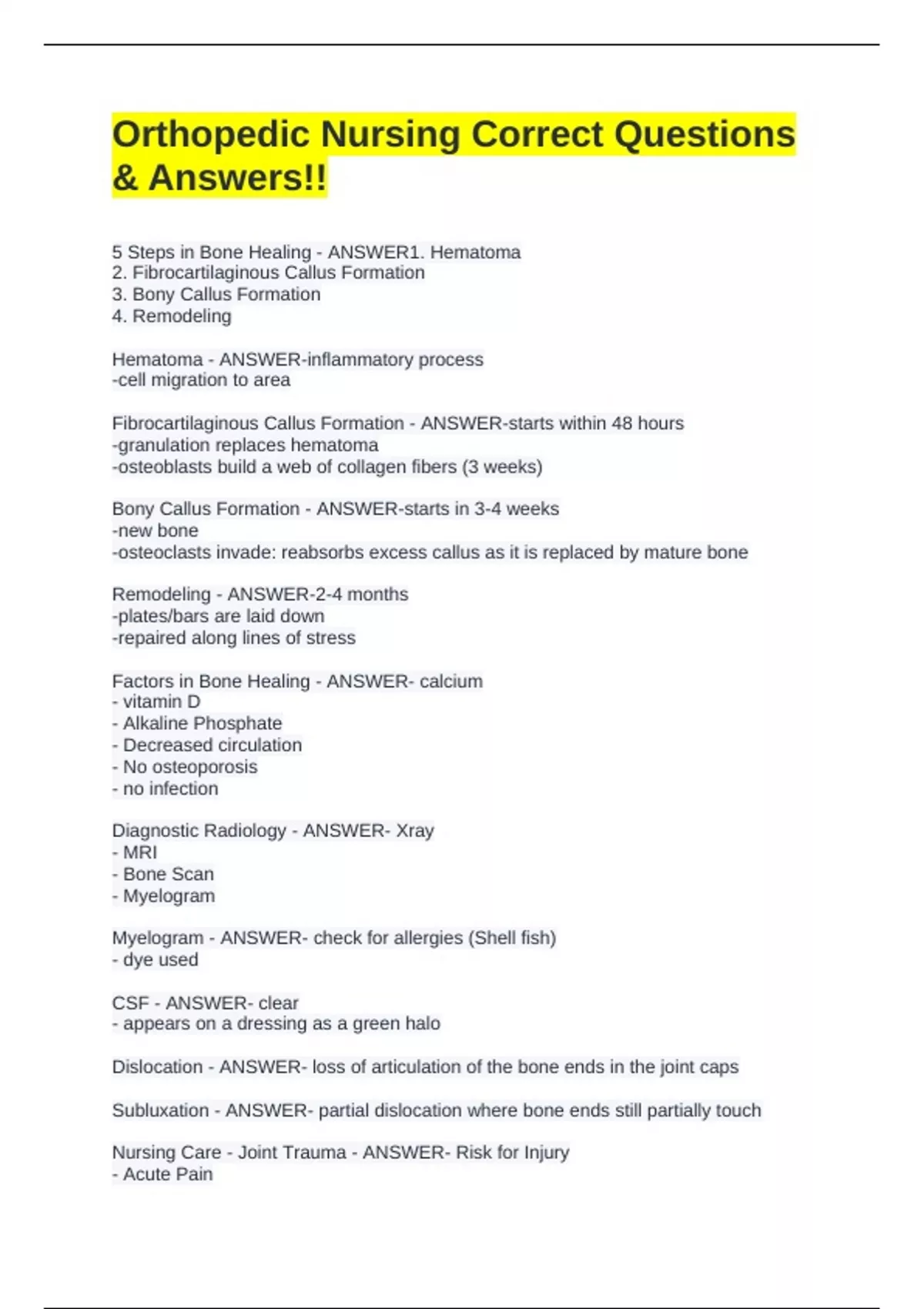 Diagnostic Radiology - ANSWER- Xray