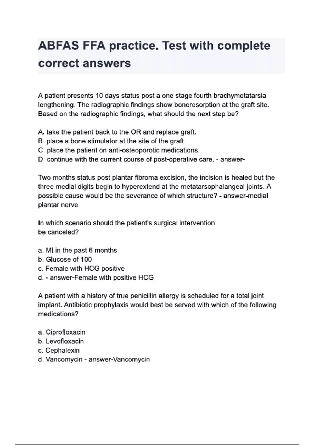 ABFAS FFA practice. Test with complete correct answers
