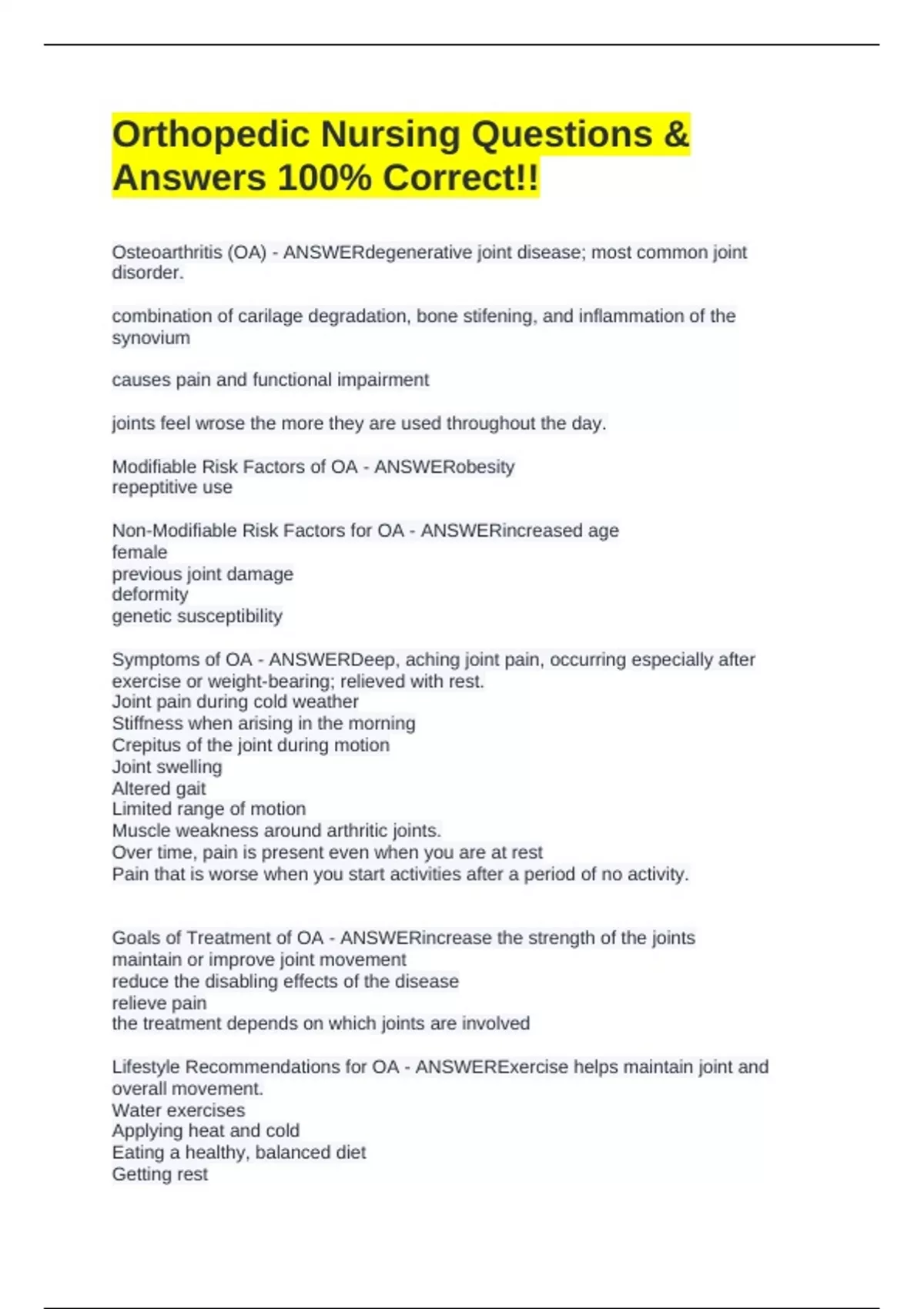 Non-Modifiable Risk Factors for OA - ANSWERincreased age